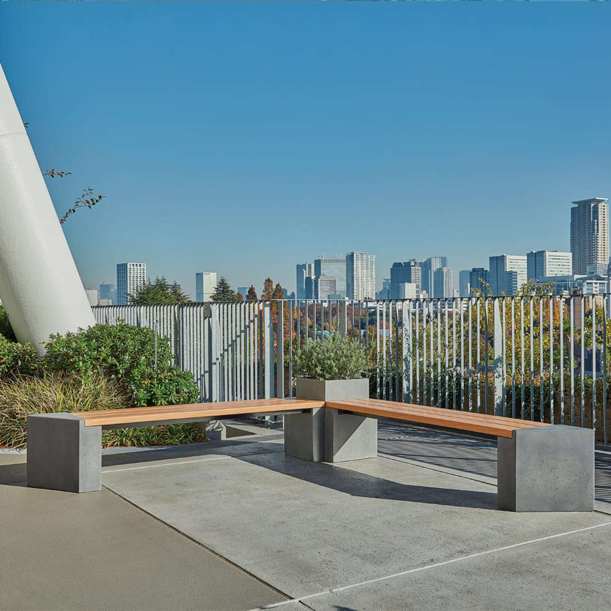 ユニットを自由に組み合わせて、理想のレイアウトを実現できるコネクトベンチです。ベースユニットCを取り付けることで、シンプルな直線レイアウトが可能です。
