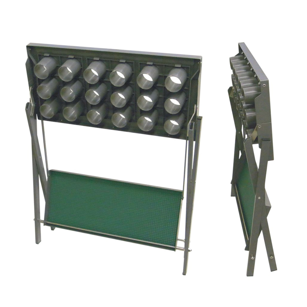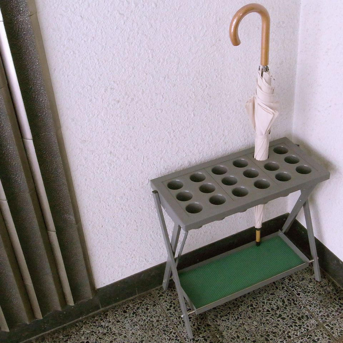 スチールと樹脂を組み合わせた、折りたたみ式の傘立てです。傘枠には仕切り筒が付いており、傘がスムーズに出し入れできます。病院、公共施設、ホテル、小売店舗、工場、学校、オフィスなどにおすすめです。