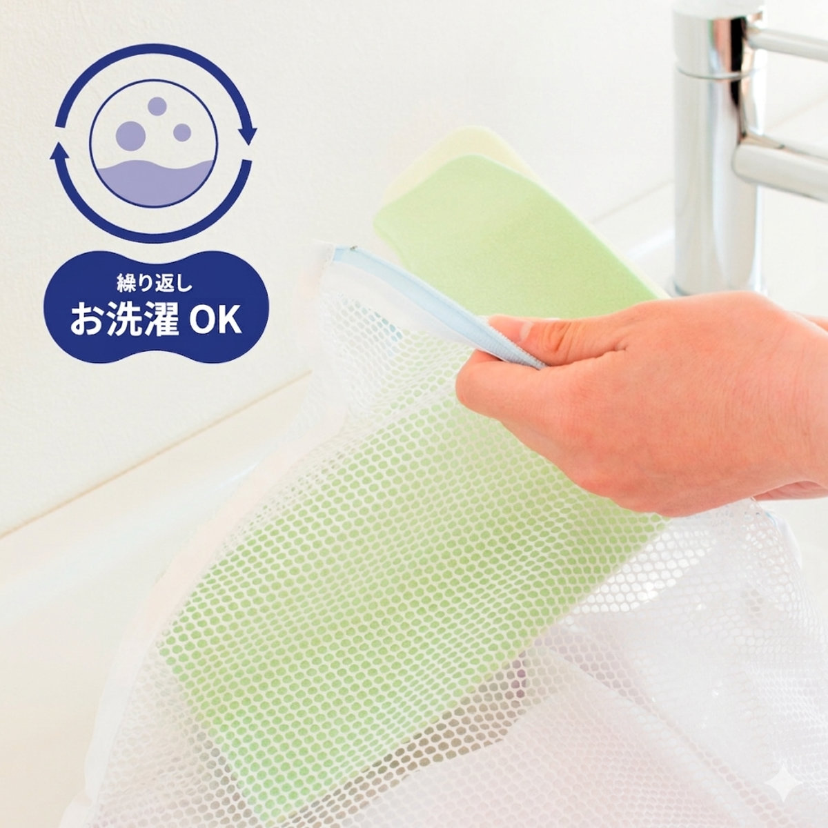 洗濯ネットに入れて、洗濯機で丸洗いできます。繰り返し洗っても毛玉ができにくい短毛フリースを使用し、吸着面も耐久性に優れているので、長く清潔にお使いいただけます。経済的で衛生的なのもうれしいポイントです。