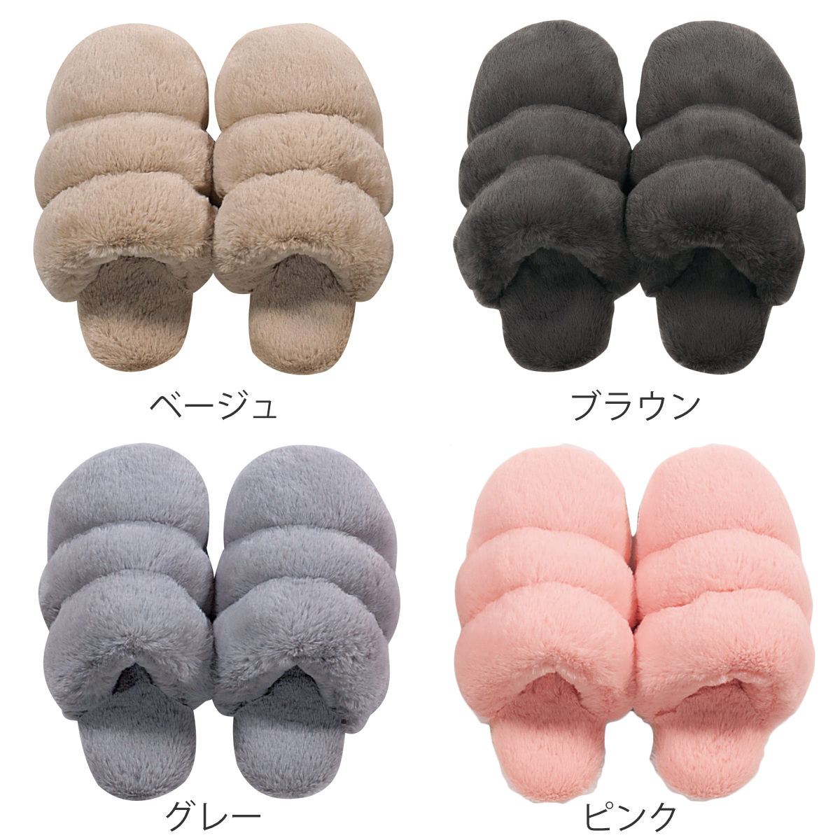 柔らかく優しい肌触りのボアを全体に使用したスリッパ