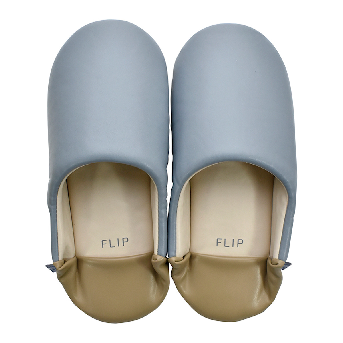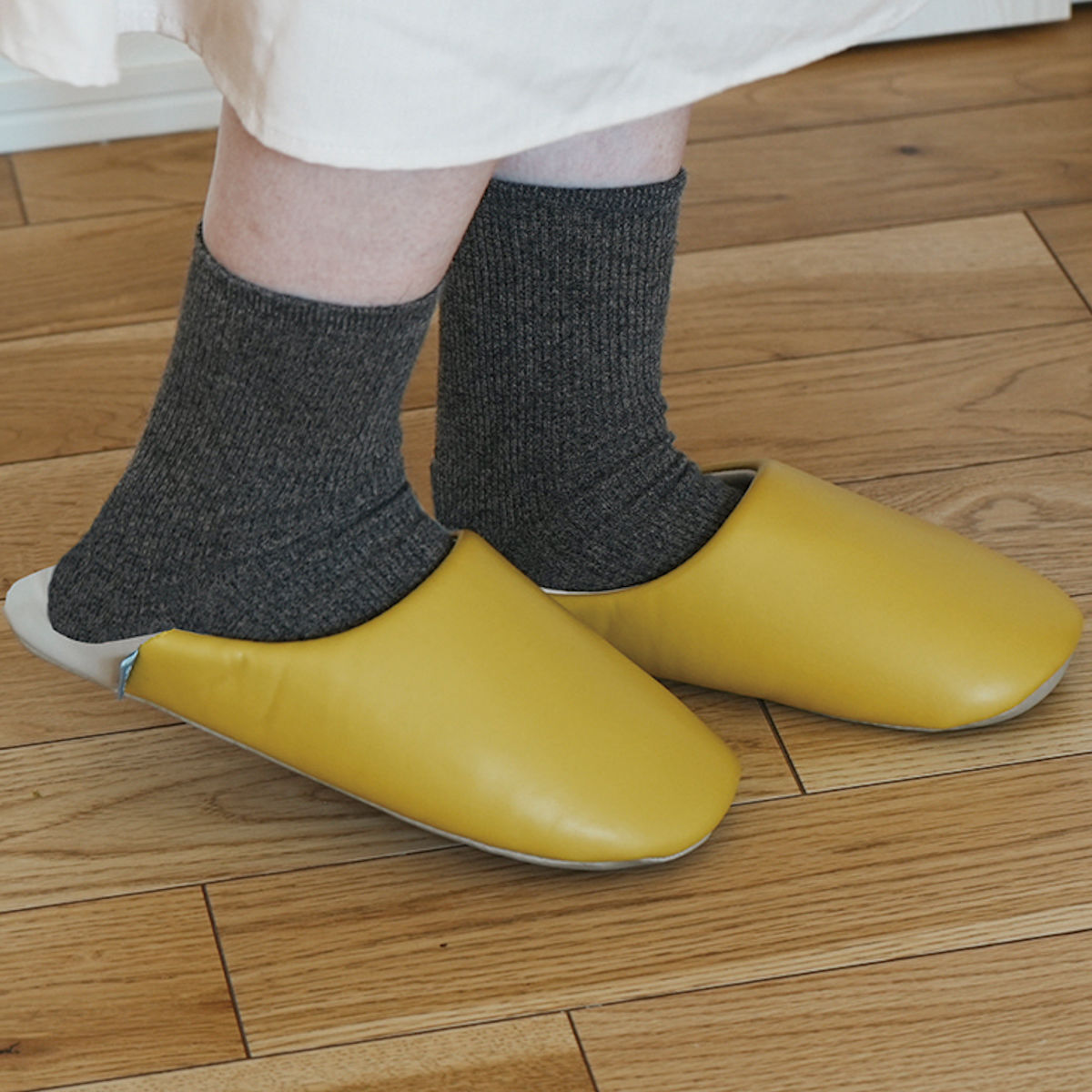 レザー調バイカラーが映える、軽やかで快適なルームシューズ