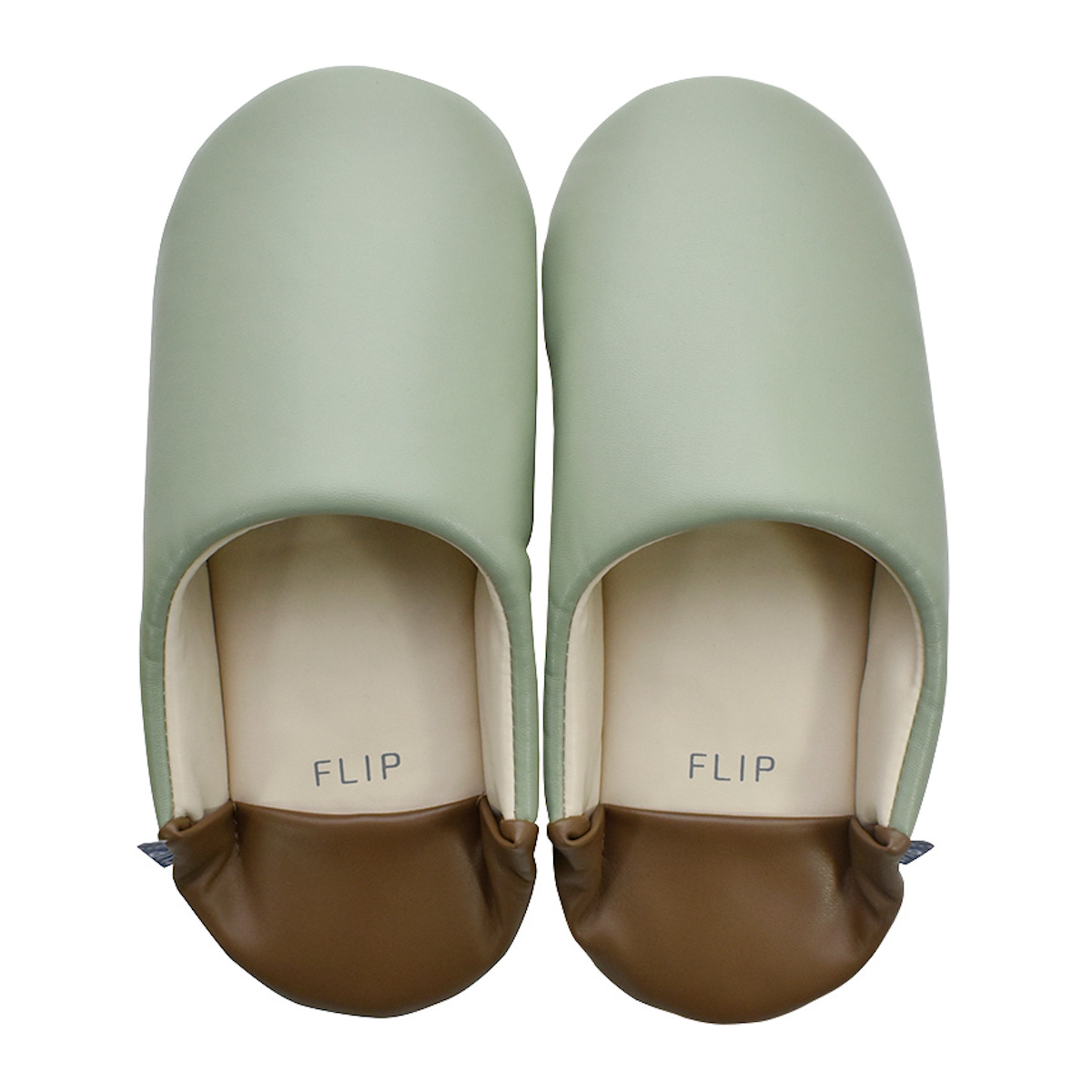 レザー調バイカラーが映える、軽やかで快適なルームシューズ