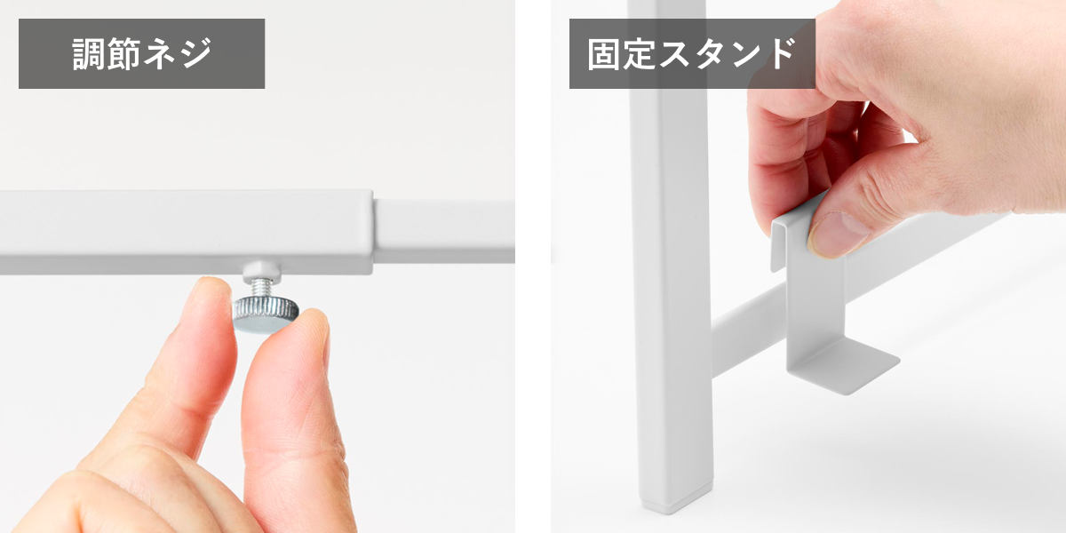 | 材質 | 本体:スチール(粉体塗装) キャップ:ポリプロピレン 固定スタンド:スチール(粉体塗装) アクリル粘着テープ |