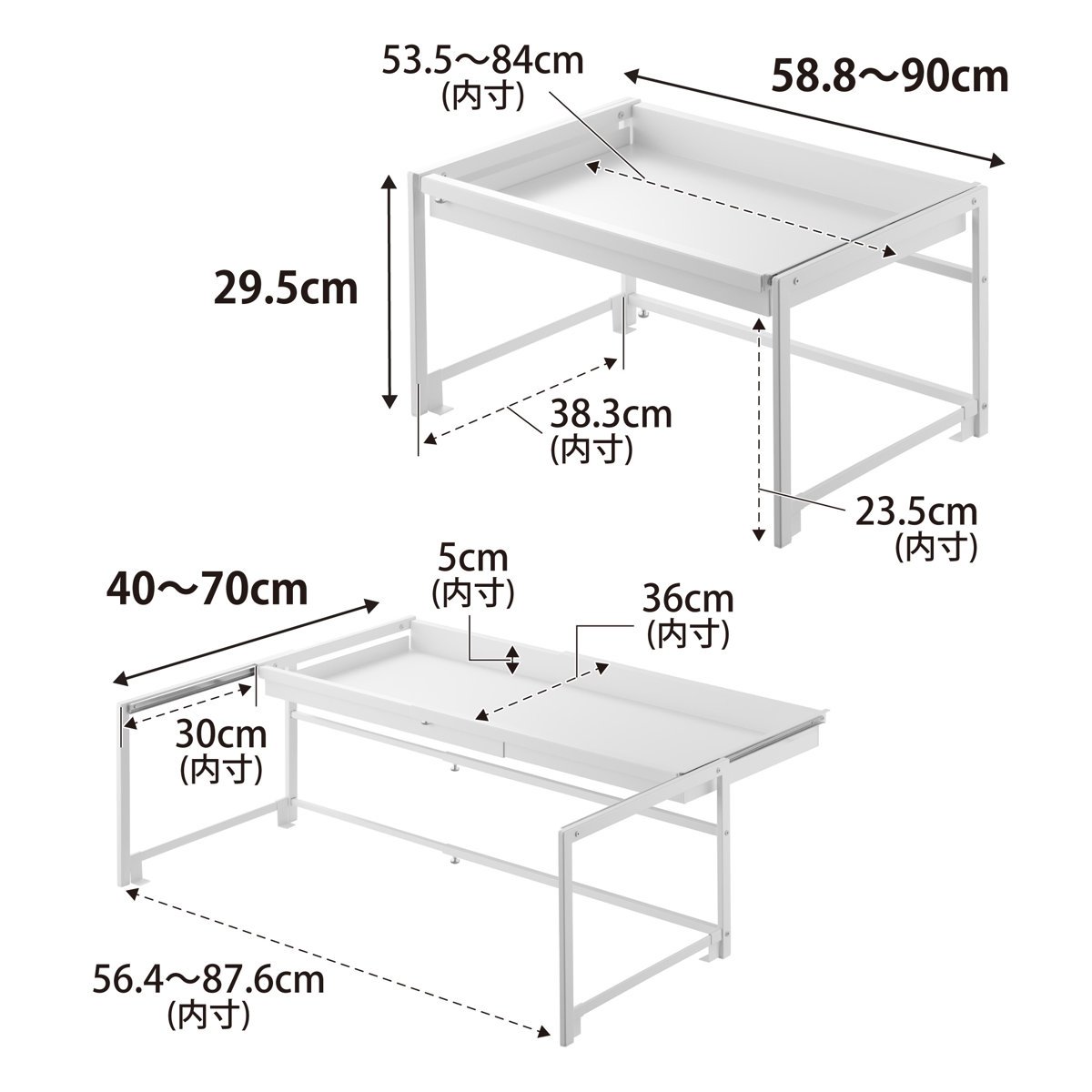 - 約幅58.8~90×奥行40~70×高さ29.5cm