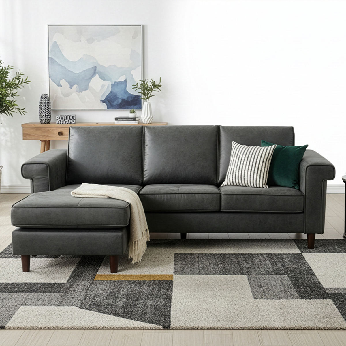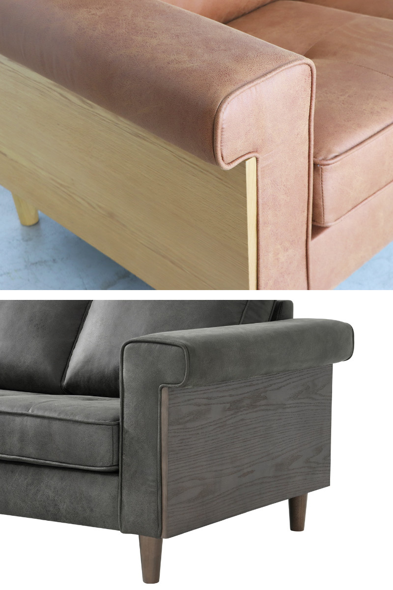 側面にオーク突板を採用することで、ソファ全体に上質感をプラス。天然木の美しい木目がアクセントとなり、シンプルなデザインでも空間を洗練された印象に演出します。