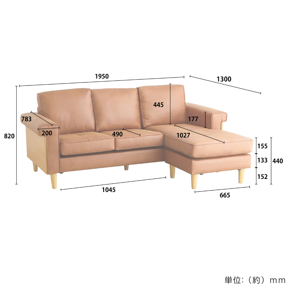 | 材質 | 張地:ポリエステル 芯材:ウレタン、Sバネ、ウェービングベルト、木枠、合板 脚:ラバーウッド 側板:オーク突板(ウレタン塗装) |