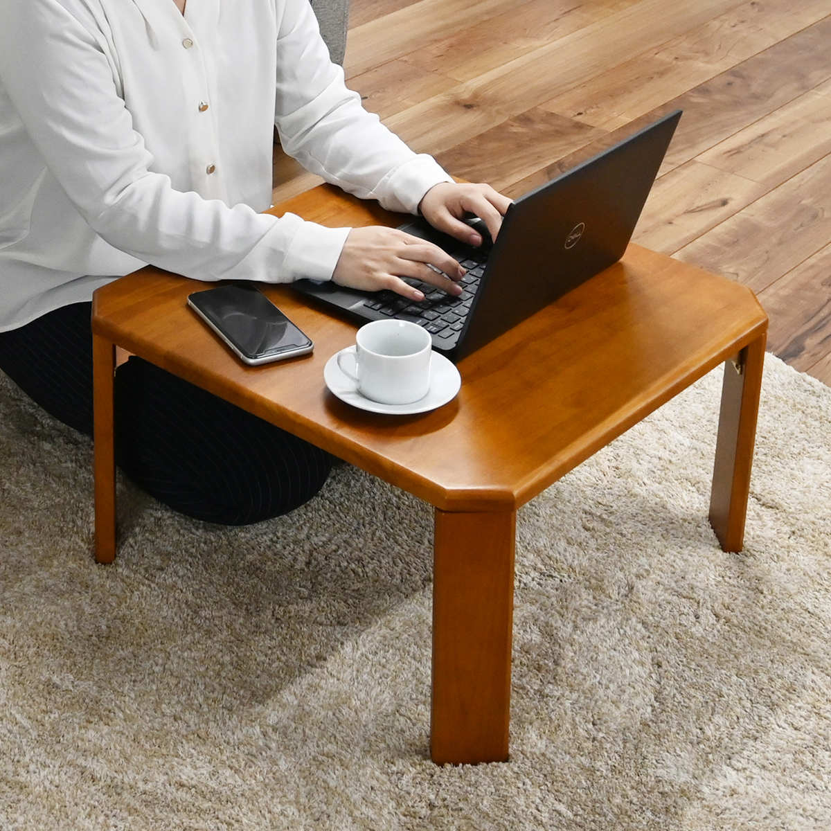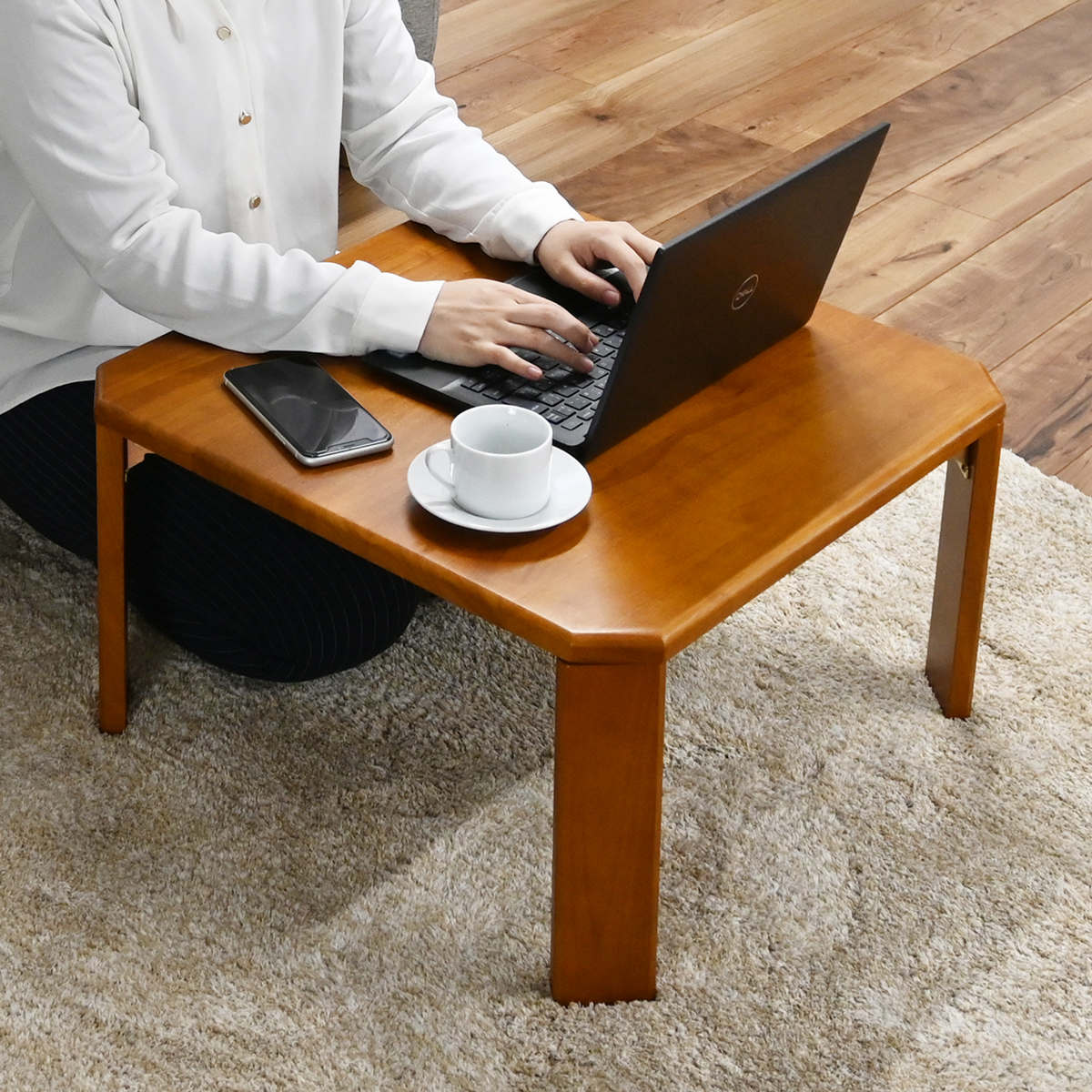 広げて作業、畳んで収納を簡単に行えるコンパクトサイズの折りたたみ式テーブルです。天然木ならではの自然な木目と風合いが、暮らしにやさしく寄り添います。