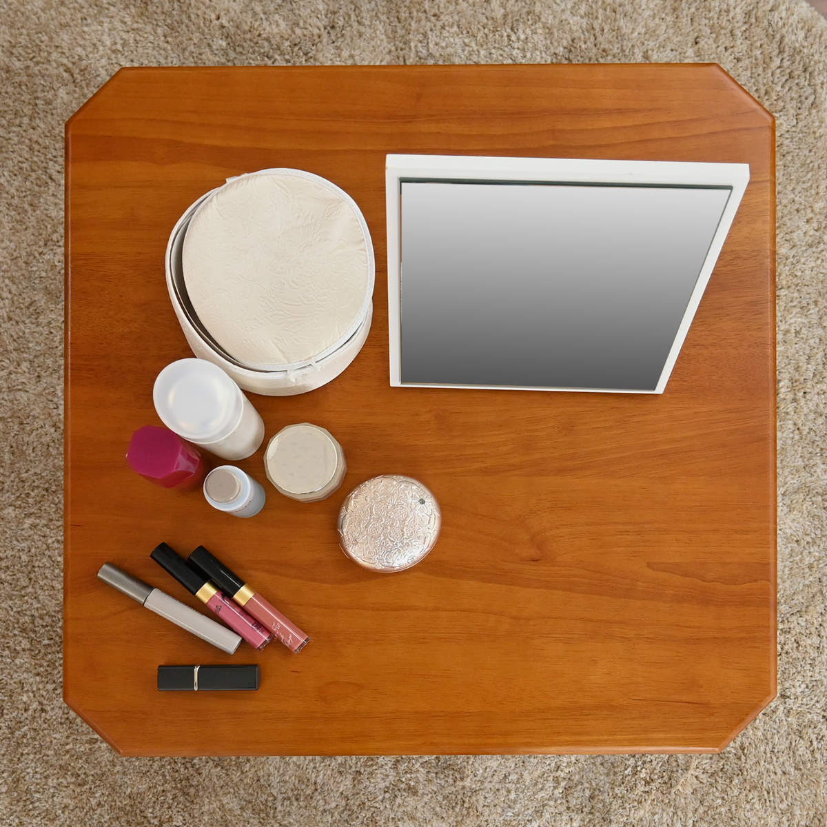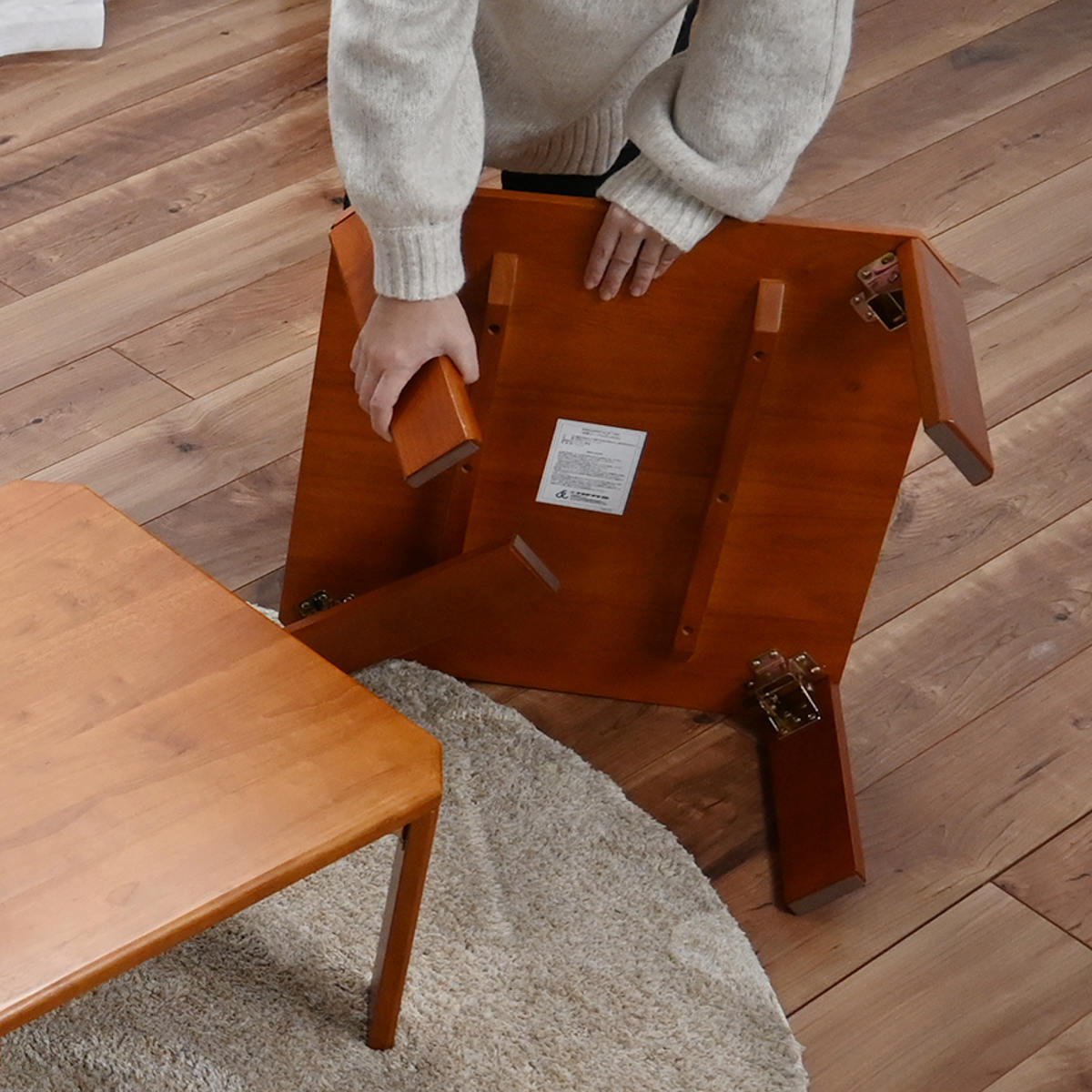 工具不要で簡単に折りたためます。ソファ下やちょっとした隙間にもスリムに収まり、急な来客時のサブテーブルや収納にも便利です。
