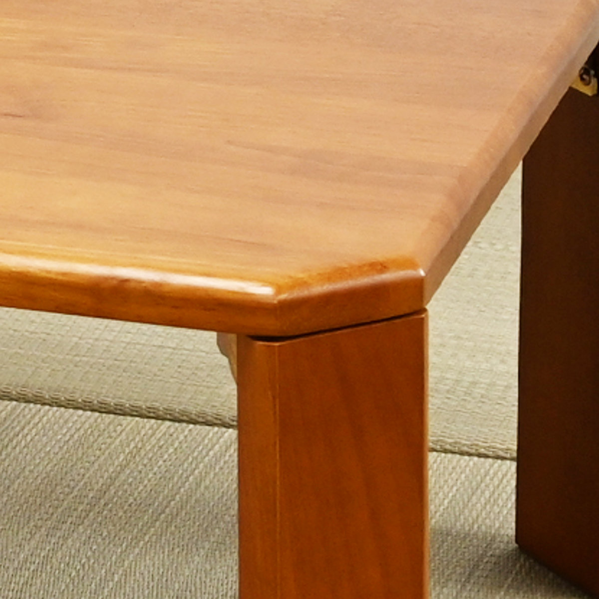 天板の角には滑らかな曲線を描く面取り加工を施しています。天然木の質感を活かしつつ、上品でやわらかな印象に仕上げています。