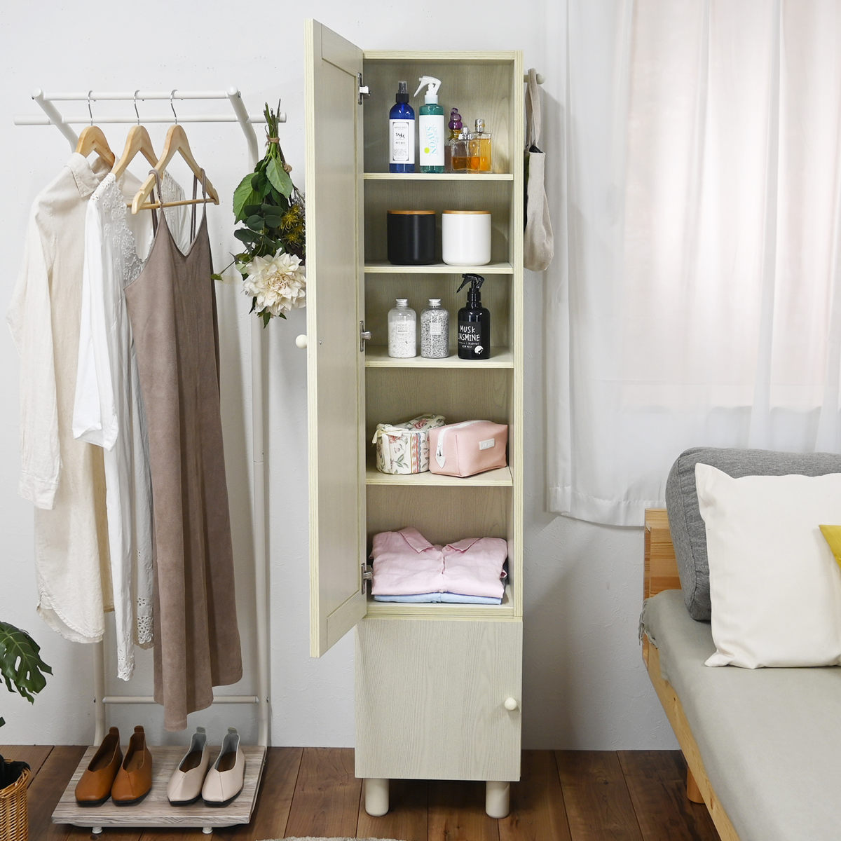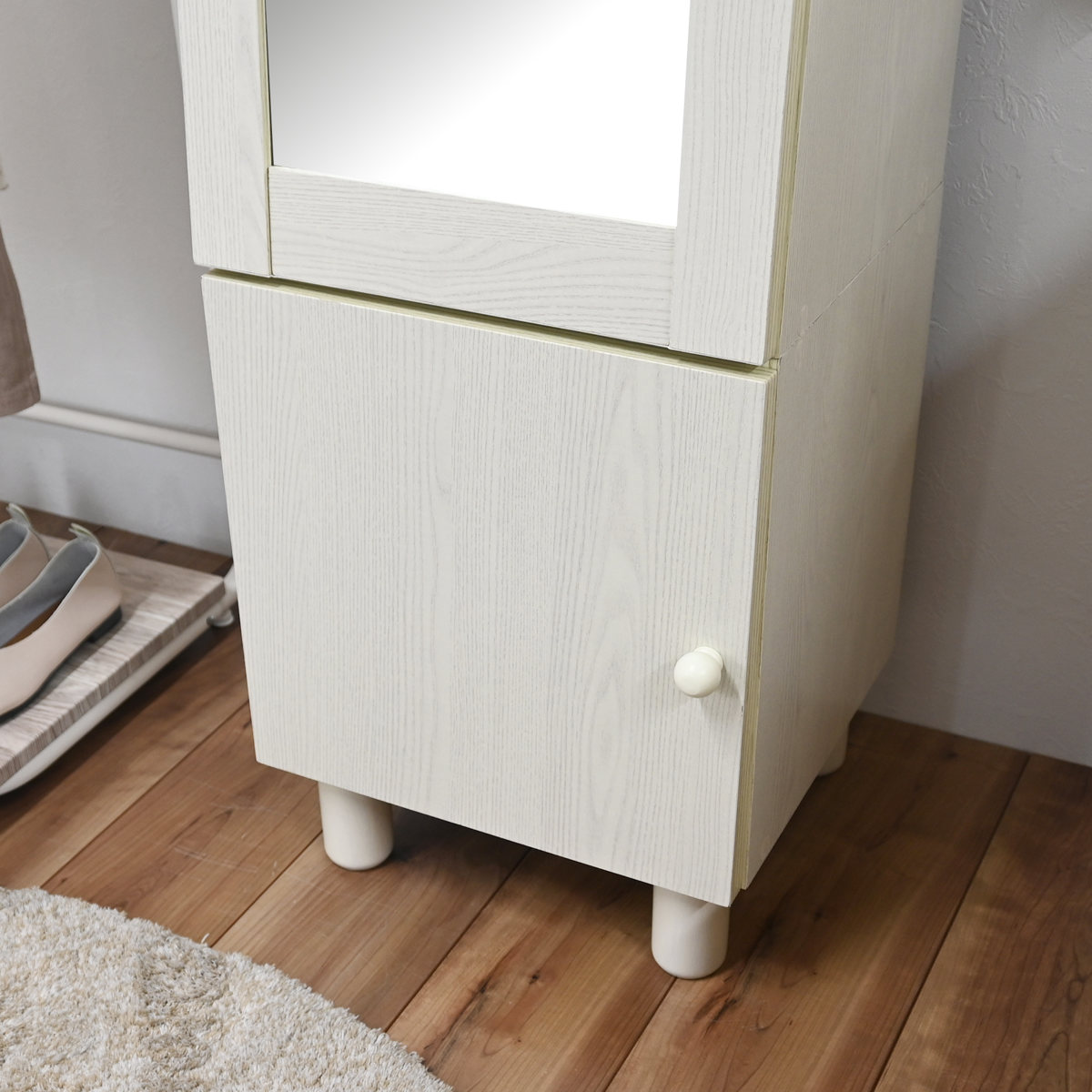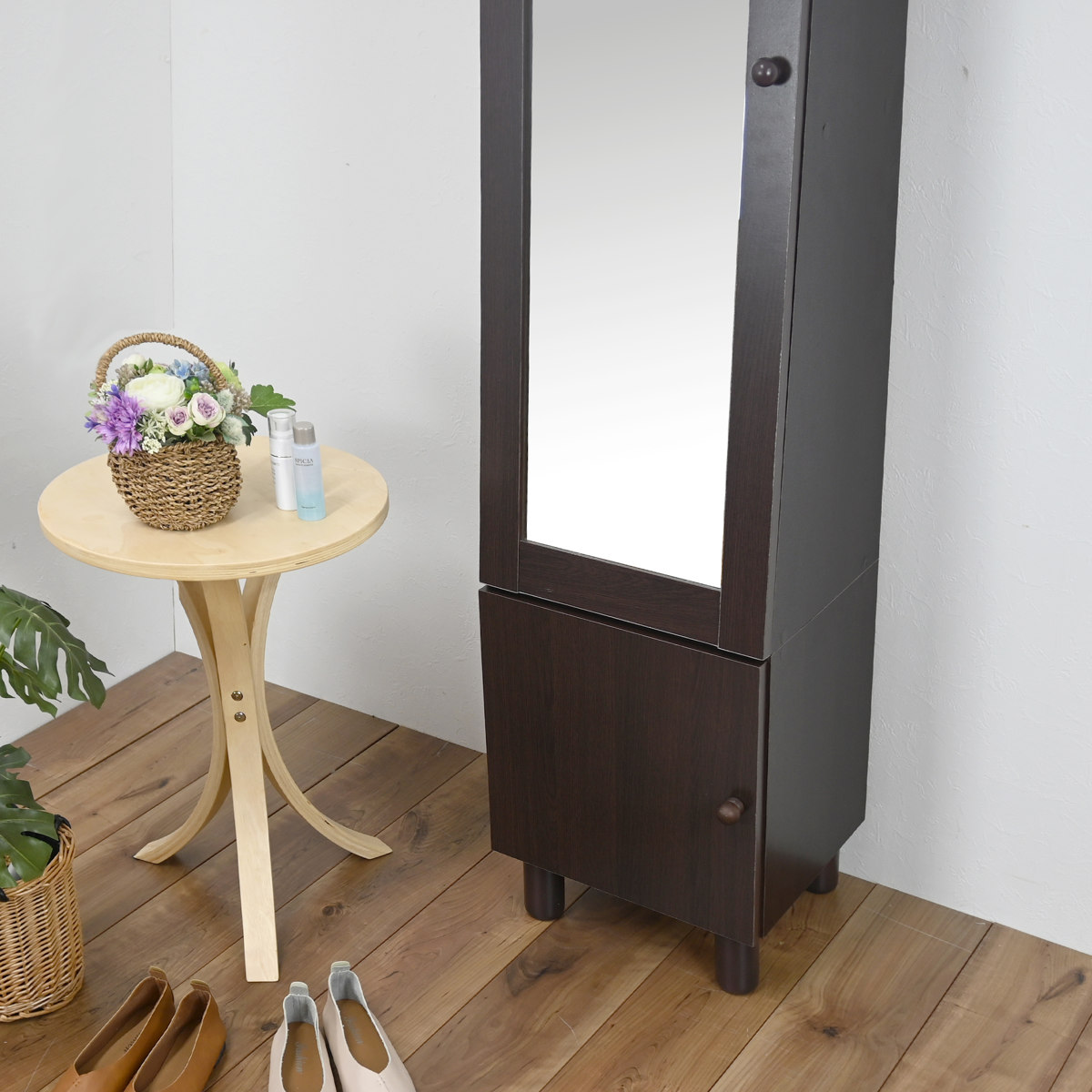 全身がしっかり映るミラーと収納を一体化した、省スペース設計のスリムラックです。見た目の美しさと使いやすさを兼ね備え、日常の身支度を快適にサポートします。