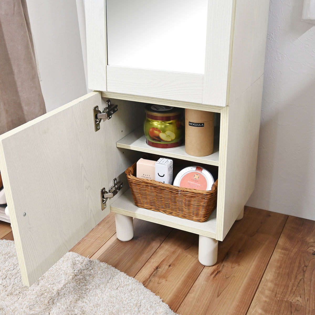 ●ミラーと収納が一つになったスリム設計の収納ラックです。