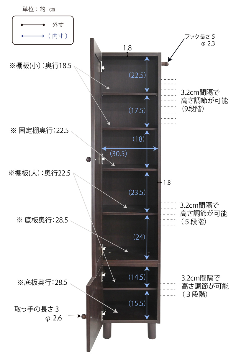 | サイズ | 約 幅39×奥行32×高さ160(cm) |