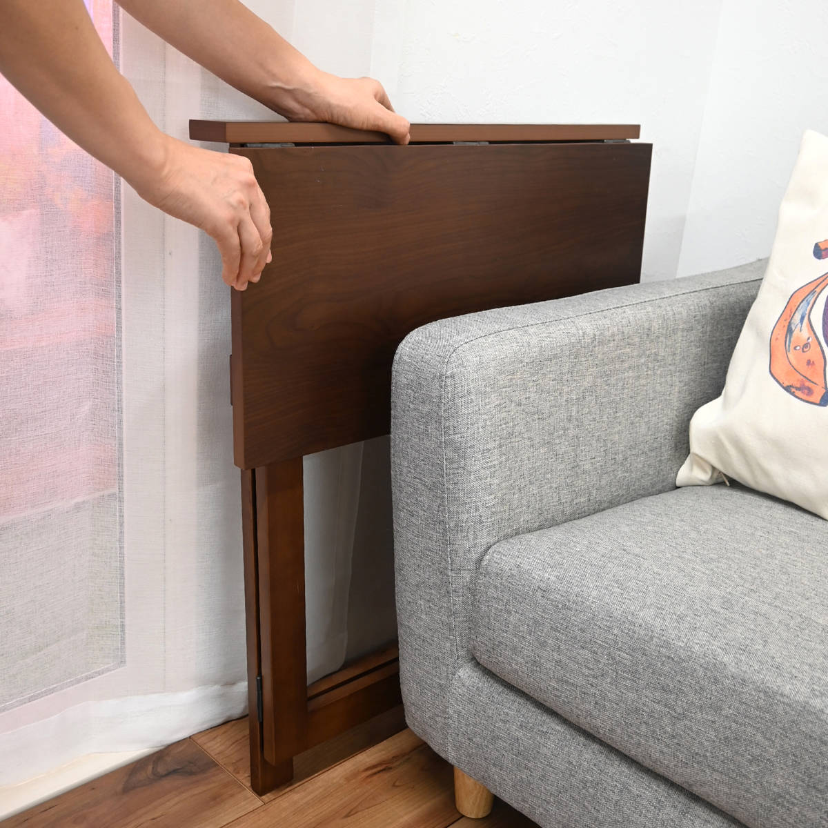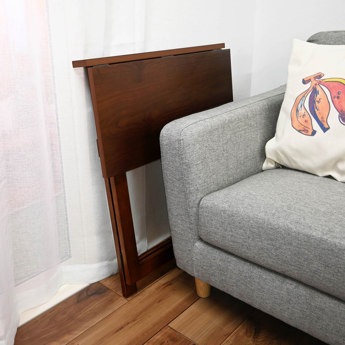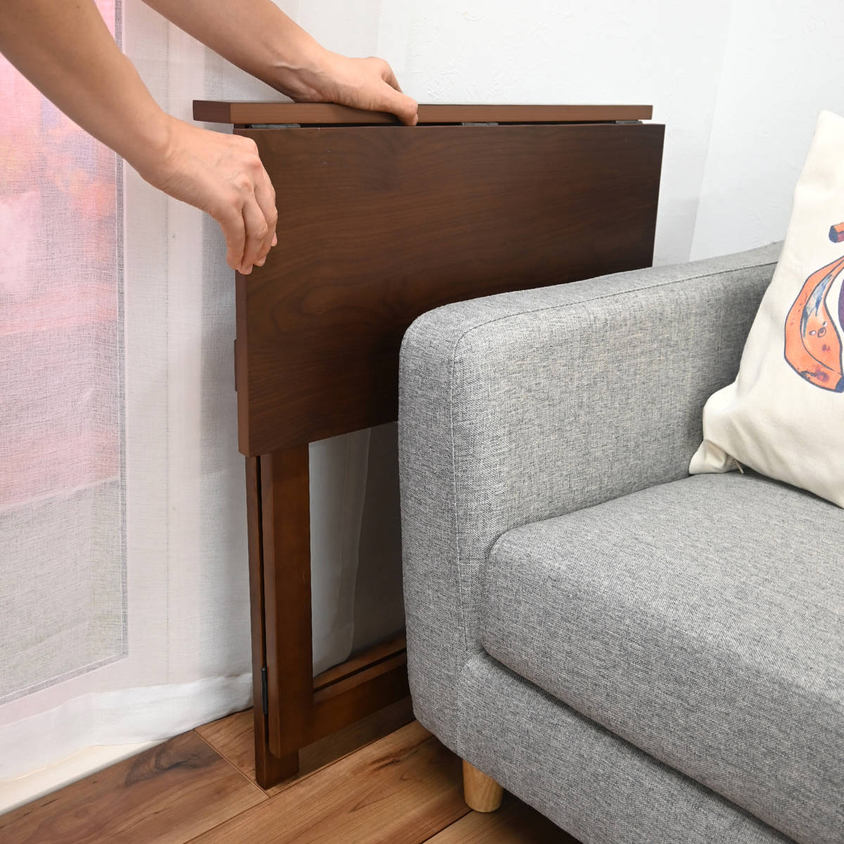折りたたむと約8.5cmの厚みになり、家具の隙間や壁際にすっきり収納できます。省スペースで場所を取りません。