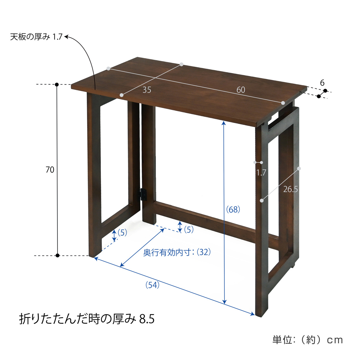 ●折りたたんだ時の厚みは、約8.5cmです。