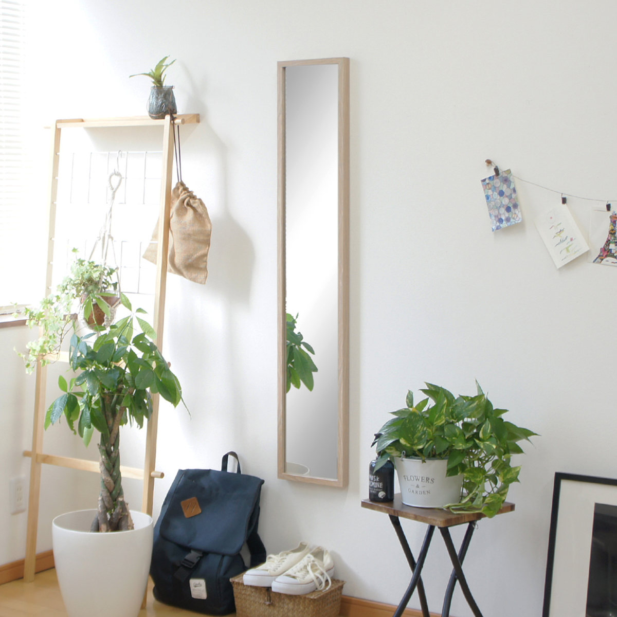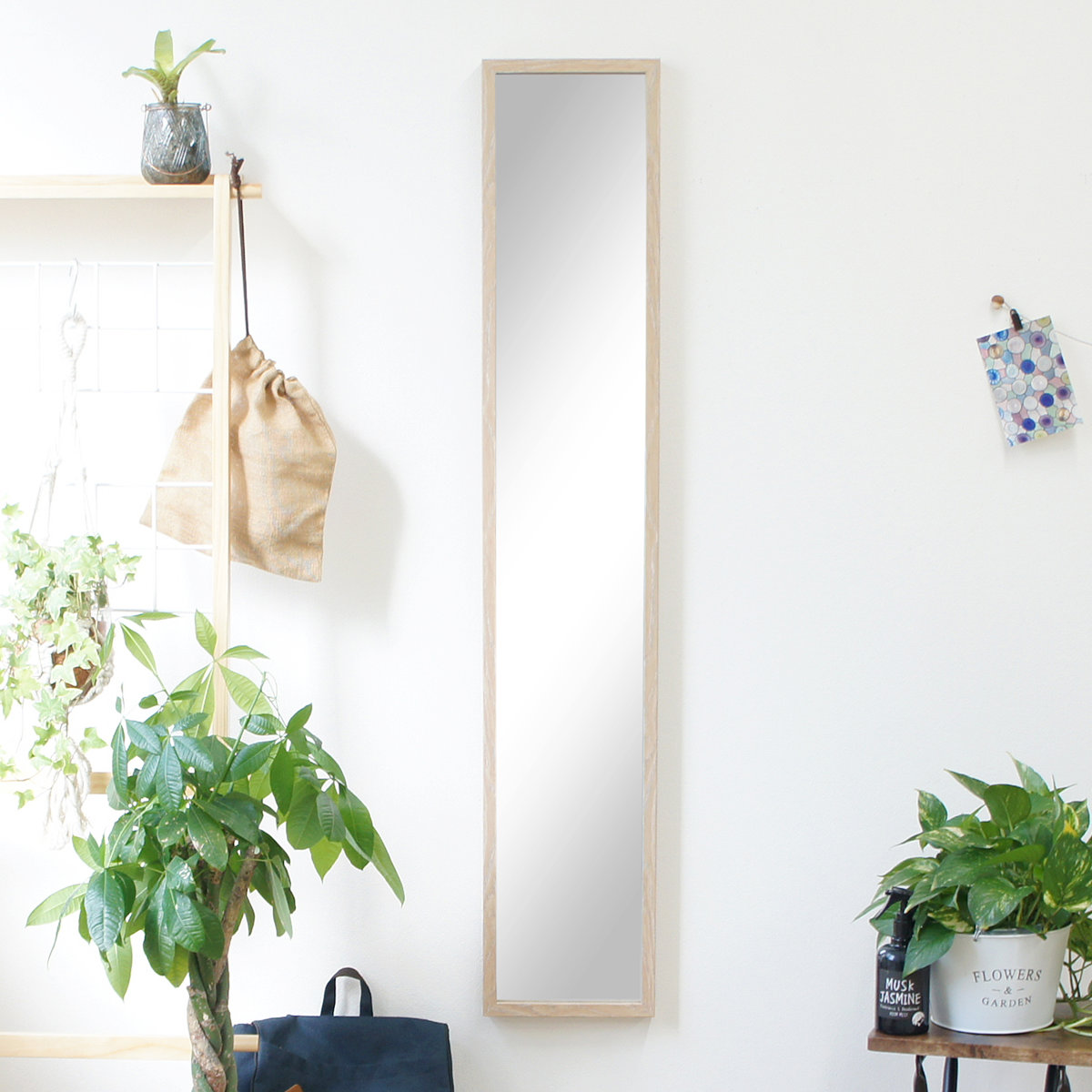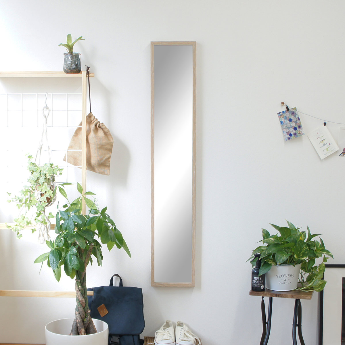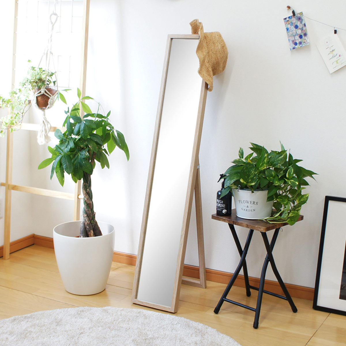 お部屋での身支度や、玄関先でのお出かけ前の最終チェックなど、日常のさまざまなシーンで活躍します。全身がしっかり映るサイズで使い勝手も抜群です。