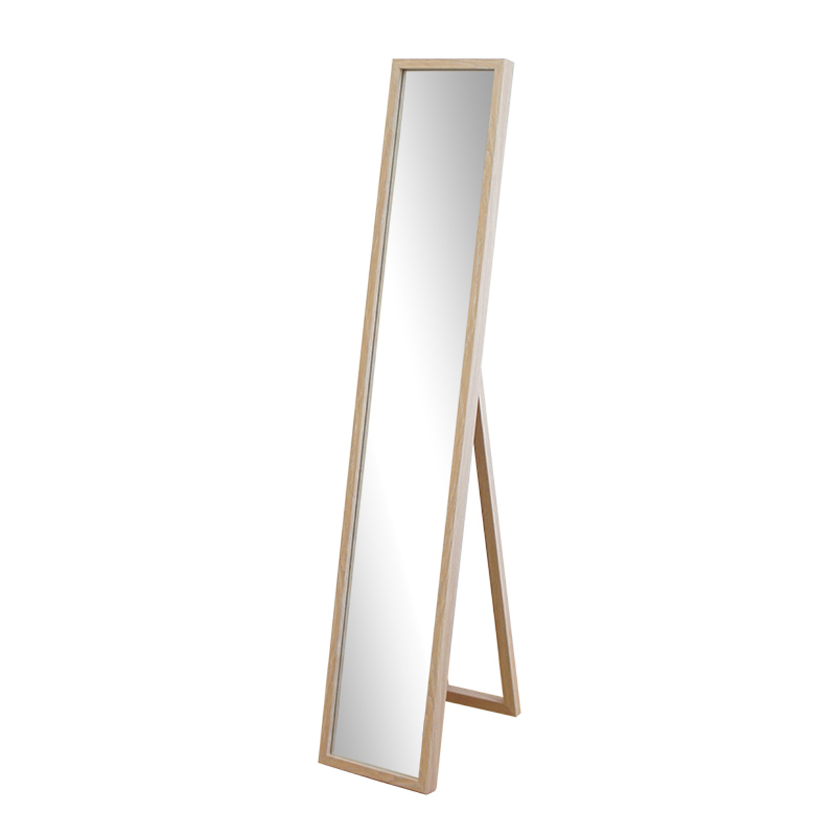 すっきりとしたシンプルなデザインで、どんなお部屋にも自然と馴染むスタンドミラーです。玄関や寝室など、さまざまな場所で活躍します。木目調のナチュラルフレームは、木の風合いを感じられるやさしいデザインです。