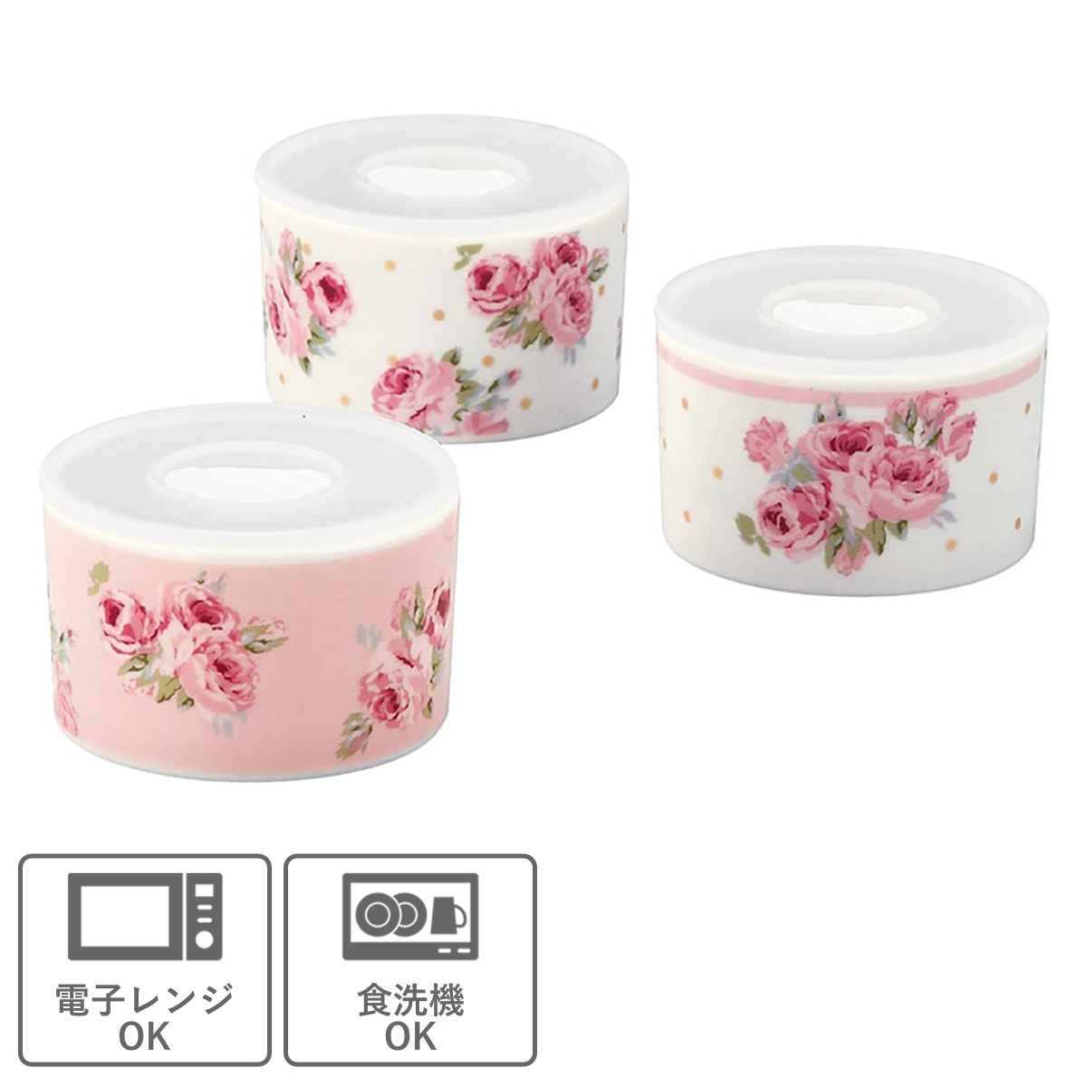 やわらかに咲くローズモチーフが、食卓をぱっと明るく彩る保存容器です。そのまま並べるだけで華やかな雰囲気が広がり、毎日の食事時間が少し特別に感じられます。