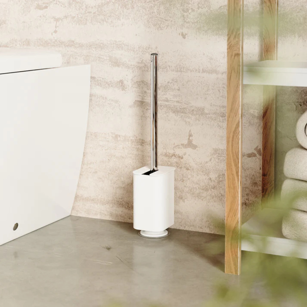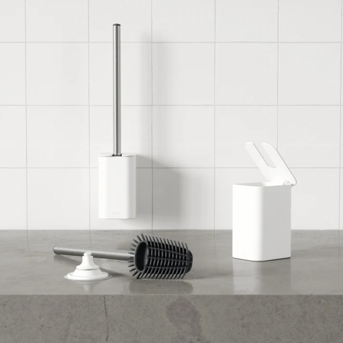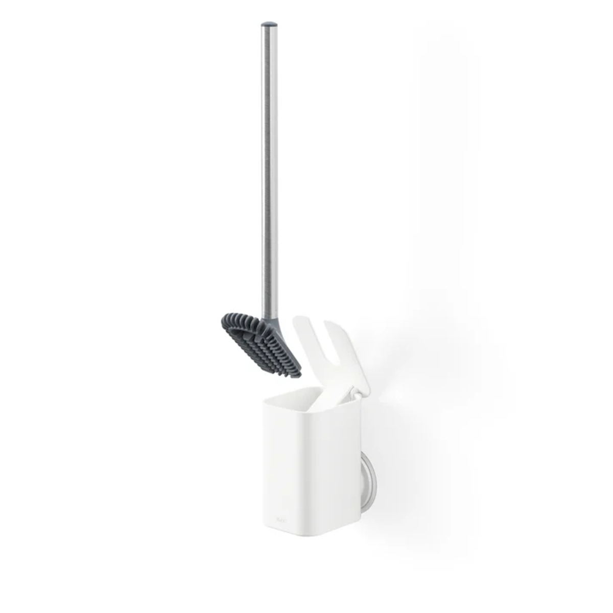 片手で出し入れができるケース付きのトイレブラシです。ブラシを外すとふたが開いたままになり、元に戻すと自動的にふたが閉まります。サッと取り出せてすぐに使えるので、トイレ掃除もスムーズにできます。