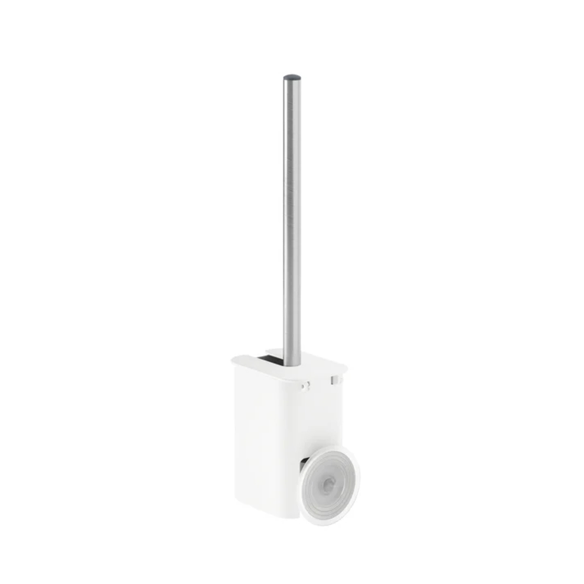 ブラシを収納するキャニスターは、床に置いて固定する方法と、浮かせて固定する方法の2種類の設置が可能です。石、金属、樹脂板などの様々な表面に対応している防水の粘着テープで、簡単に取り付けることができます。