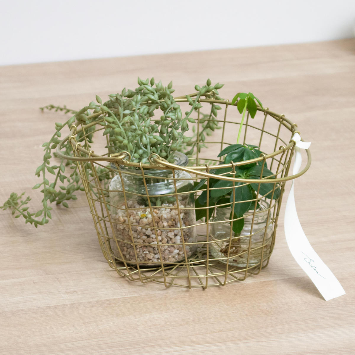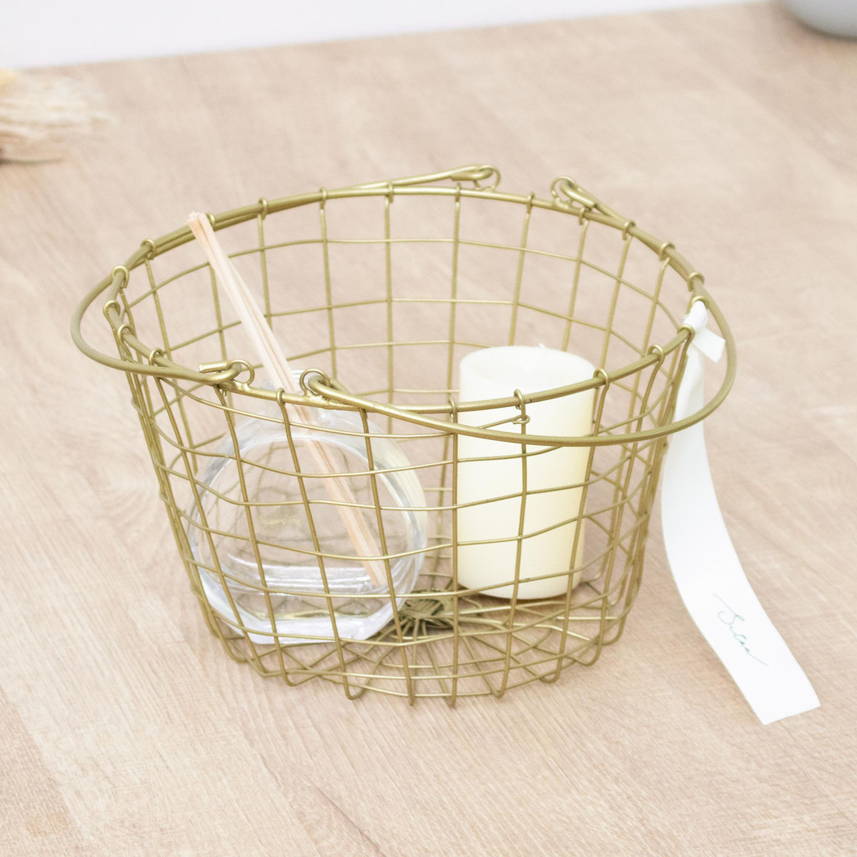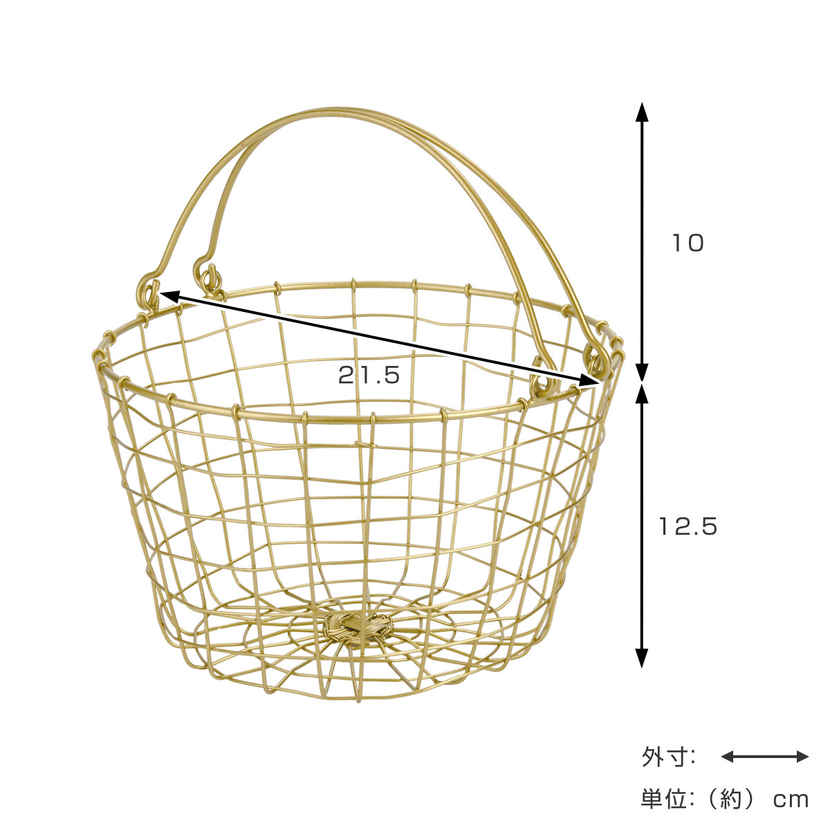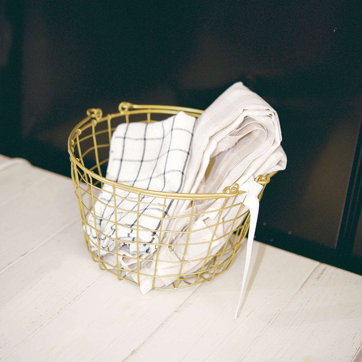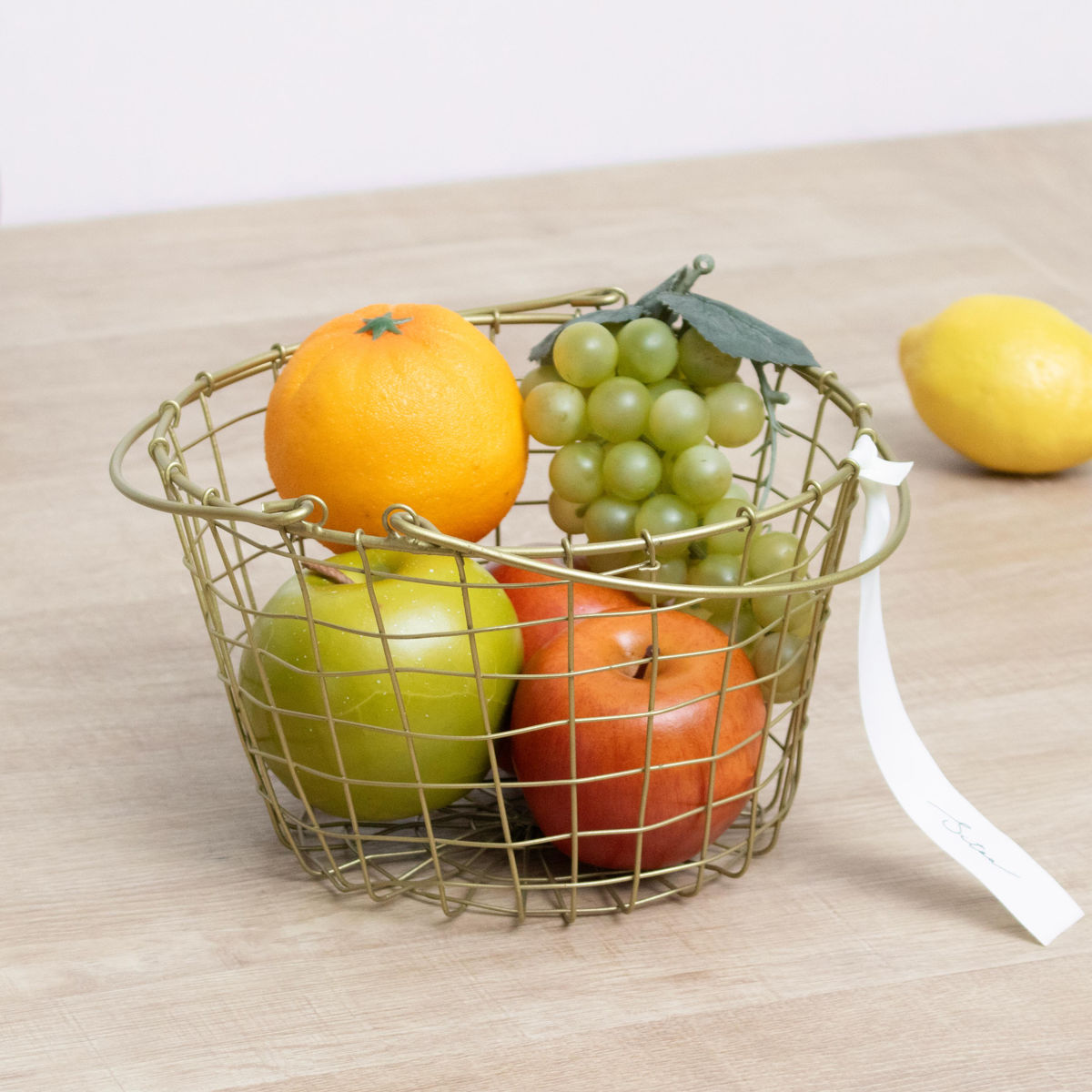 真鍮をイメージしたゴールドカラーが、空間にさりげない華やかさを添えるワイヤーバスケットです。使う場所を選ばずお家のどこに置いても自然になじみ、インテリアを上品に引き立てます。