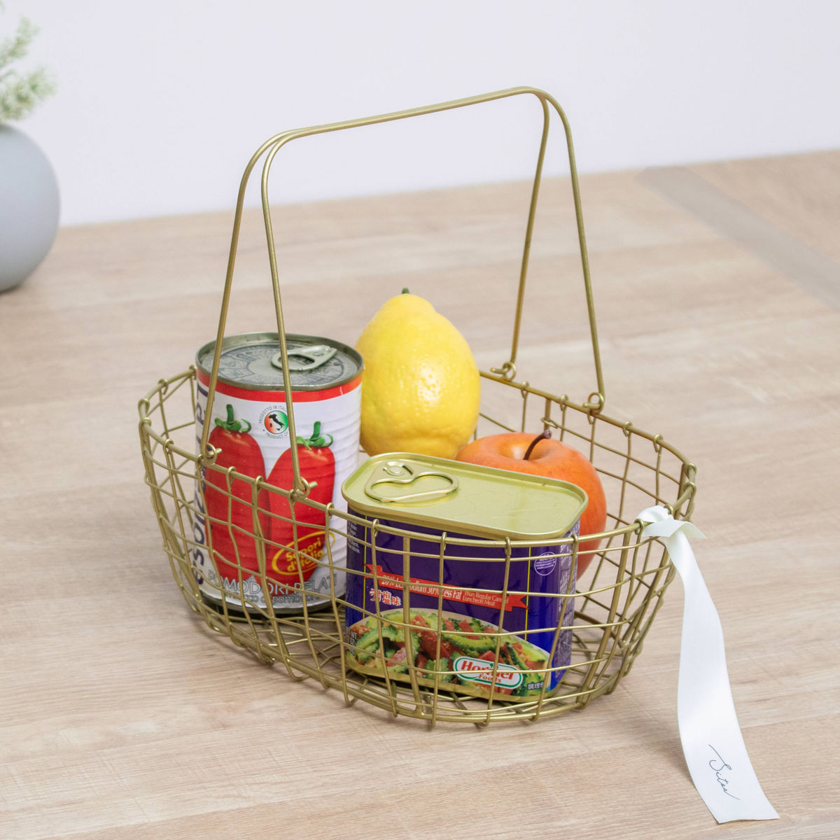 真鍮をイメージしたゴールドカラーが、空間にさりげない華やかさを添えるワイヤーバスケットです。使う場所を選ばずお家のどこに置いても自然になじみ、インテリアを上品に引き立てます。