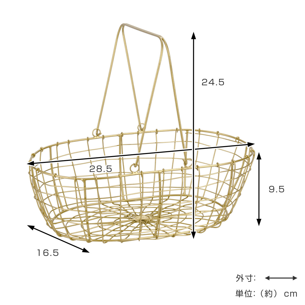 | サイズ | 約 幅28.5×奥行16.5×高さ24.5(cm) カゴ部分:約 高さ9.5cm |