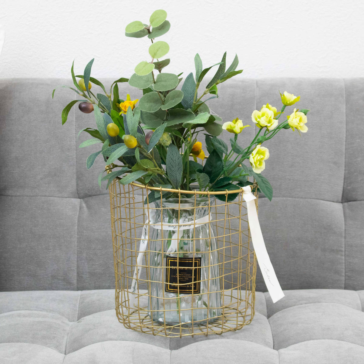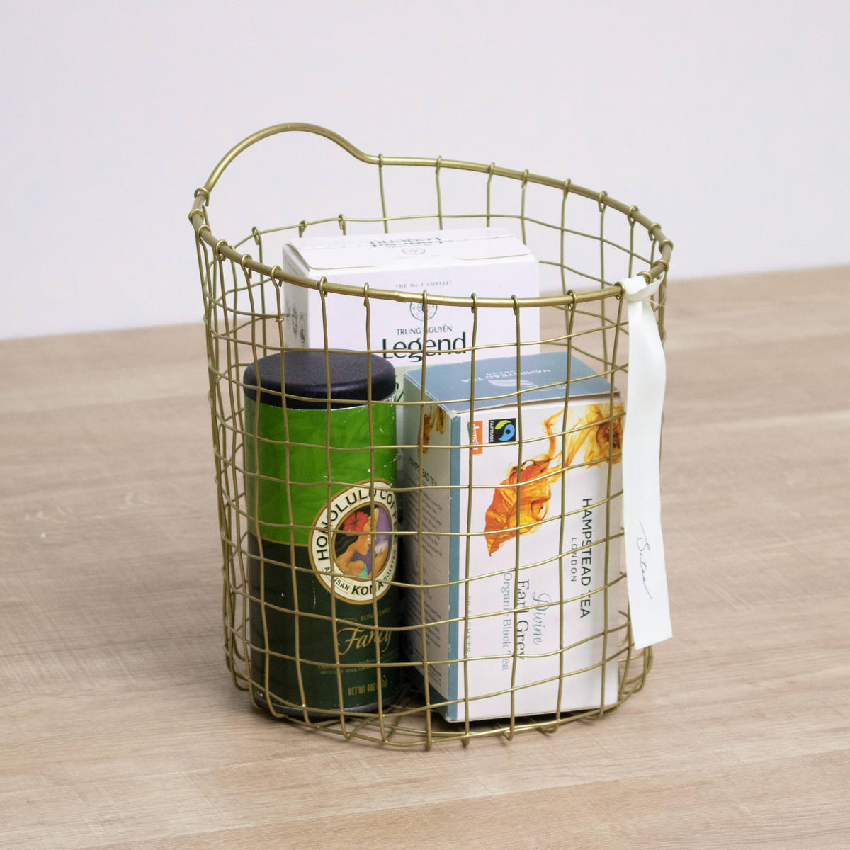 真鍮をイメージしたゴールドカラーが、空間にさりげない華やかさを添えるワイヤーバスケットです。使う場所を選ばずお家のどこに置いても自然になじみ、インテリアを上品に引き立てます。