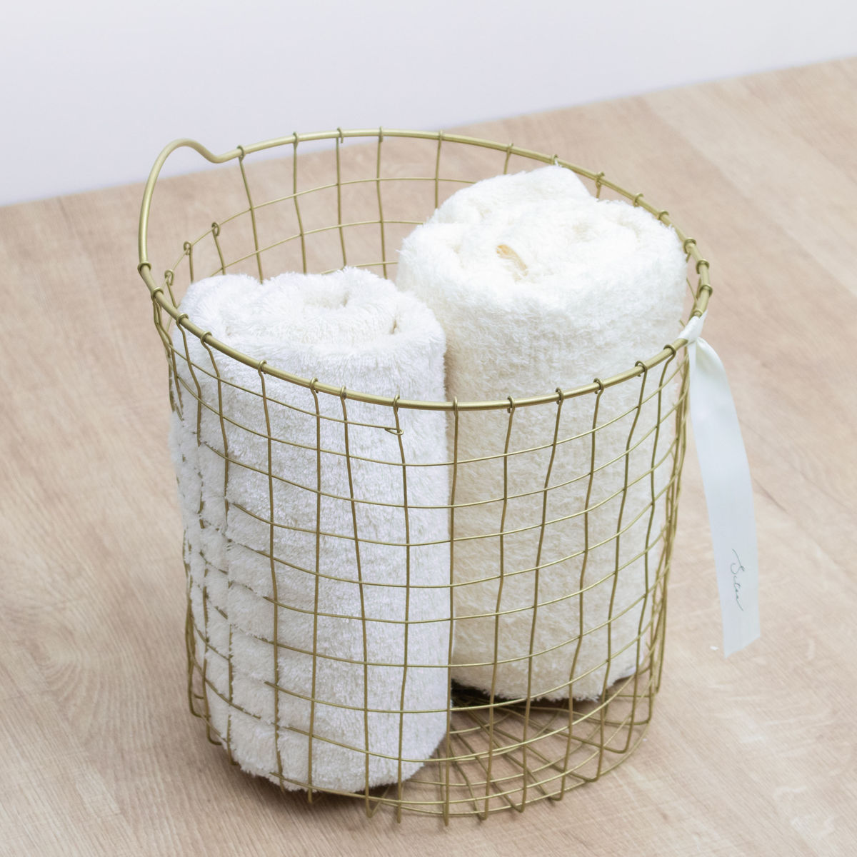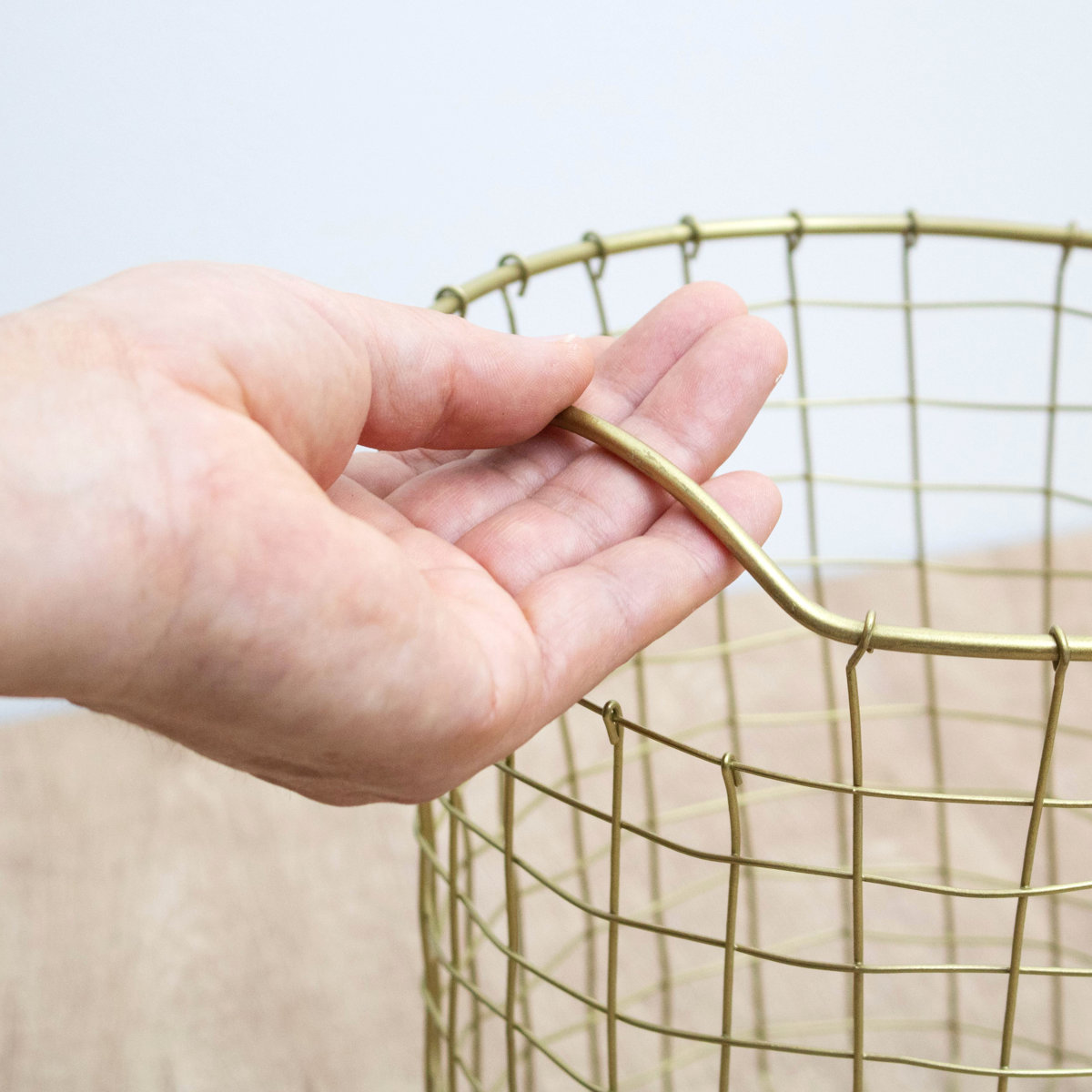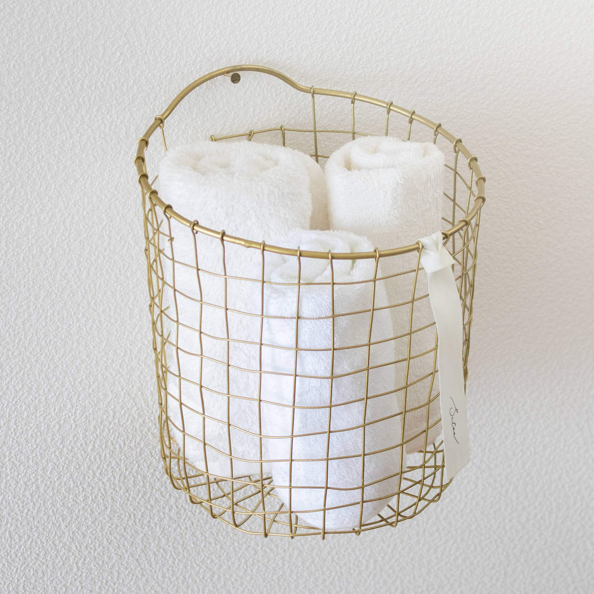 真鍮をイメージしたゴールドカラーが、空間にさりげない華やかさを添えるワイヤーバスケットです。使う場所を選ばずお家のどこに置いても自然になじみ、インテリアを上品に引き立てます。