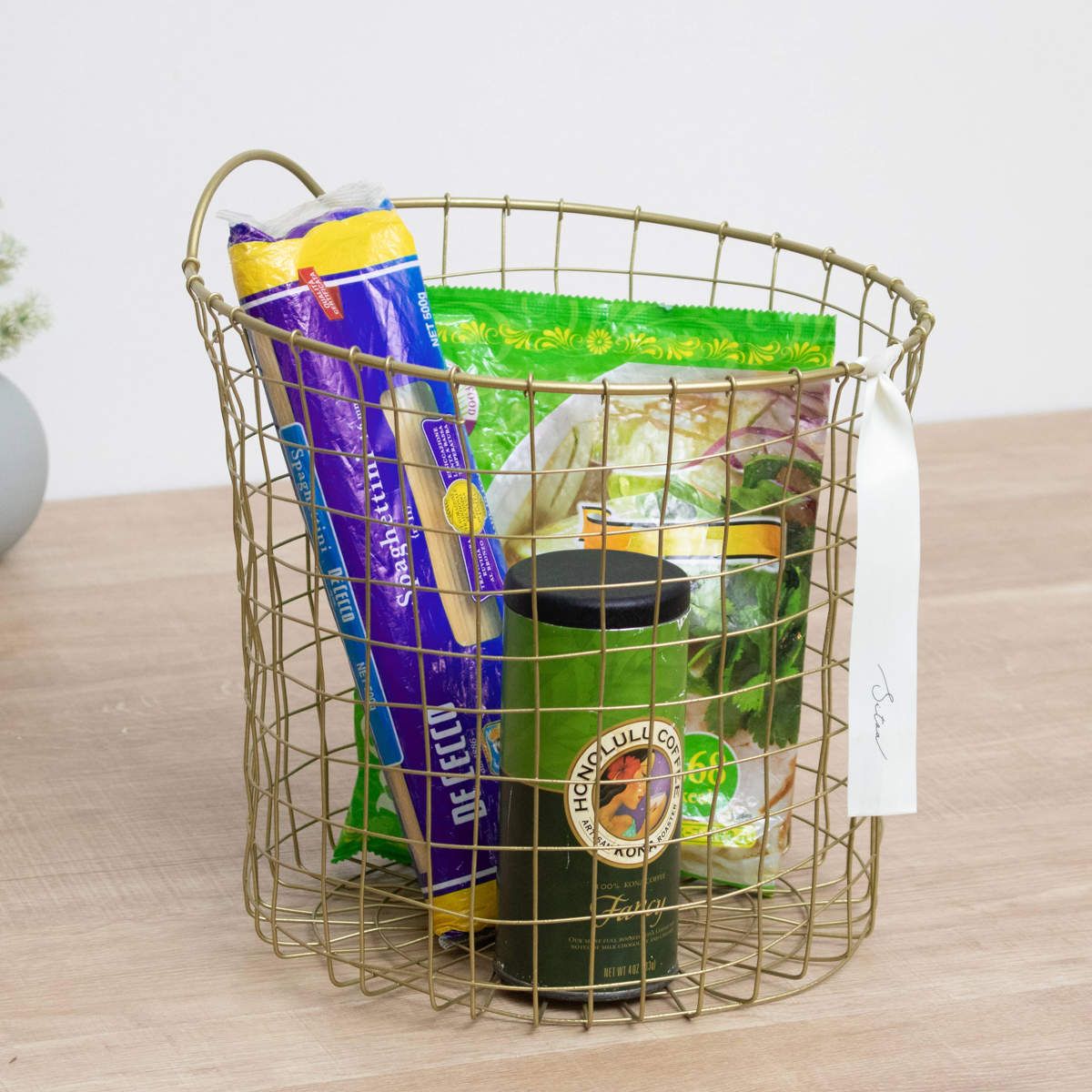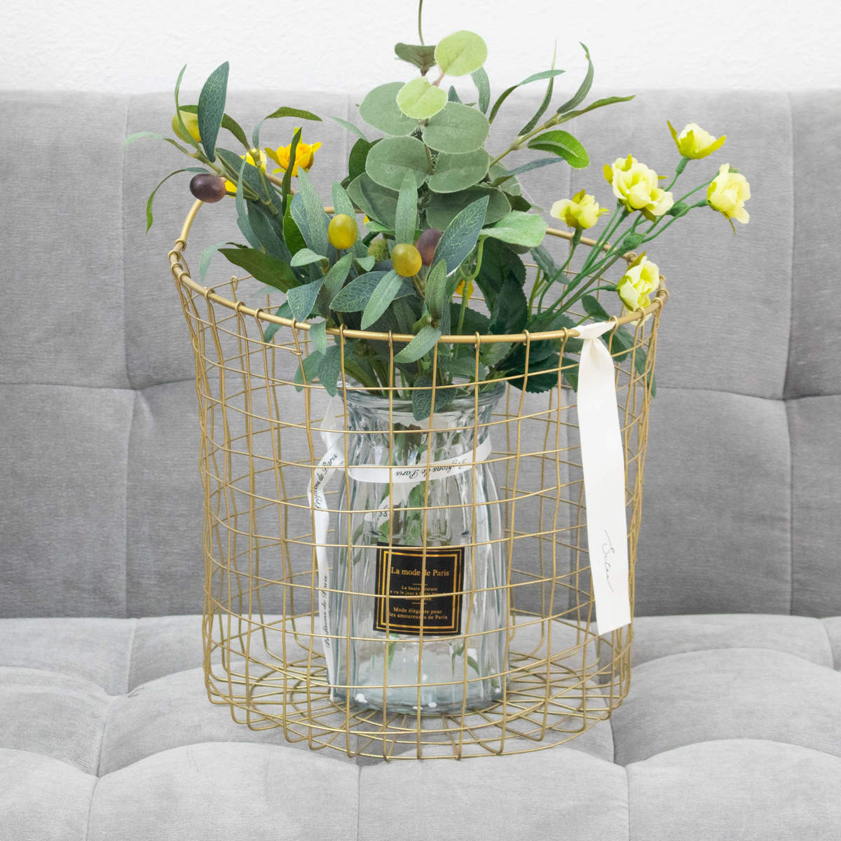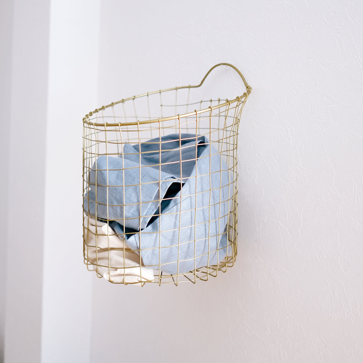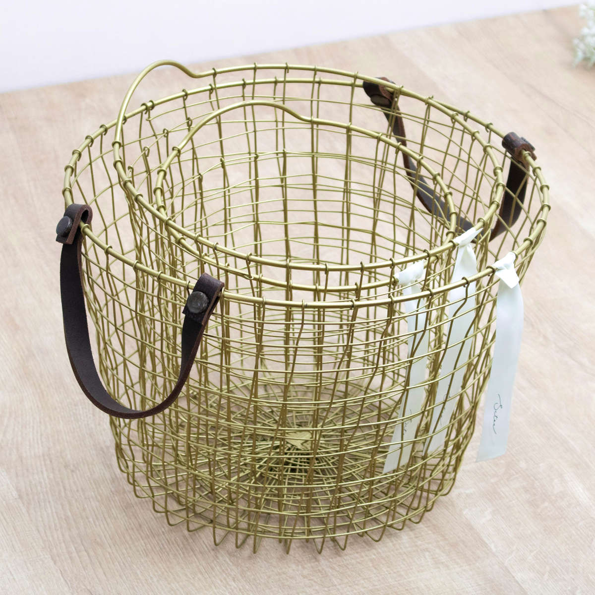 真鍮をイメージしたゴールドカラーが、空間にさりげない華やかさを添えるワイヤーバスケットです。使う場所を選ばずお家のどこに置いても自然になじみ、インテリアを上品に引き立てます。