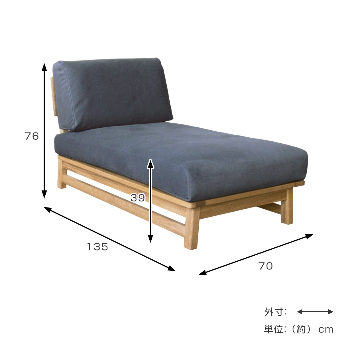 | サイズ | 約 幅70×奥行135×高さ76(cm) 座面高:約 39(cm) |