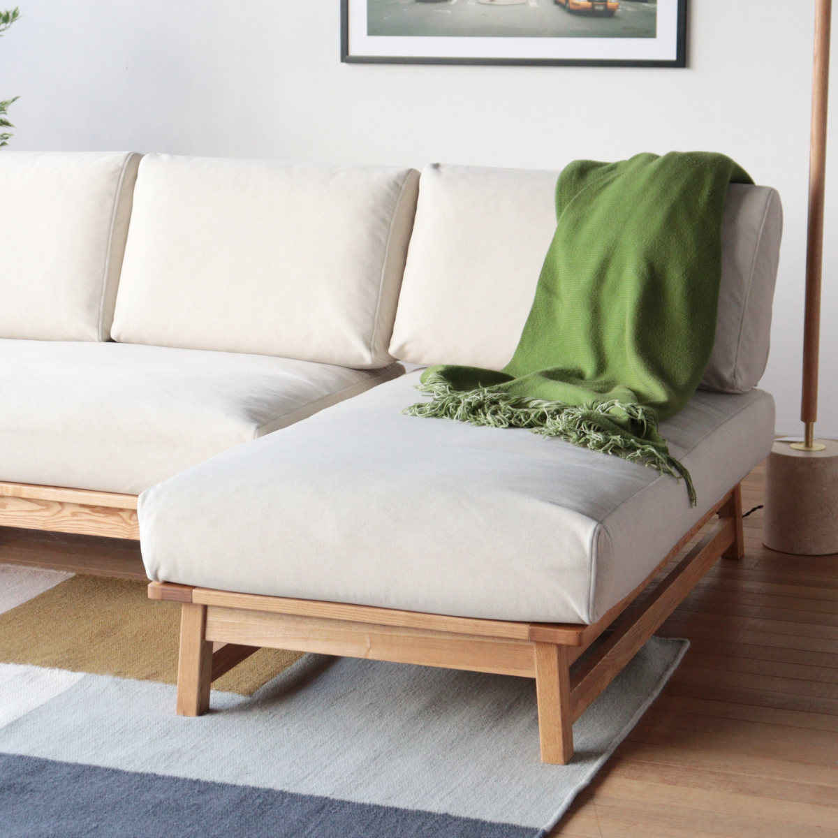 ●ナチュラルな木フレームとやわらかなクッションが調和した、シンプルで心地よいカウチソファです。