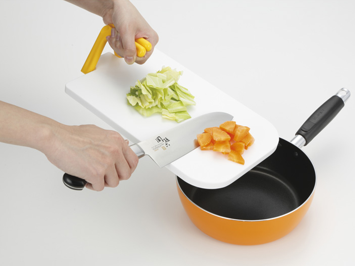 ハンドル付きの、ちょっとかわいいデザインのまな板です。切った食材をそのままお鍋やフライパンへサッと運べるので、調理もスムーズです。