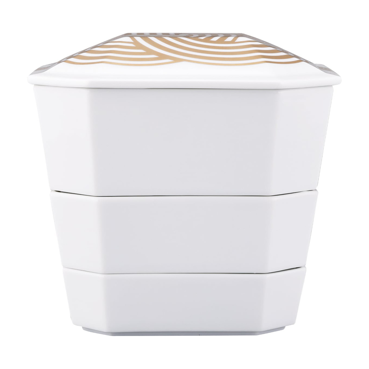 | サイズ | 蓋:約 幅17×奥行17×高さ2.9 (cm) 一重:約 幅16.4×奥行16.4×高さ6 (cm) 二重:約 幅14.5×奥行14.5×高さ4.5 (cm) 三重:約 幅13.5×奥行13.5×高さ3.5 (cm) 収納時:約 幅17×奥行17×高さ8.7 (cm) |