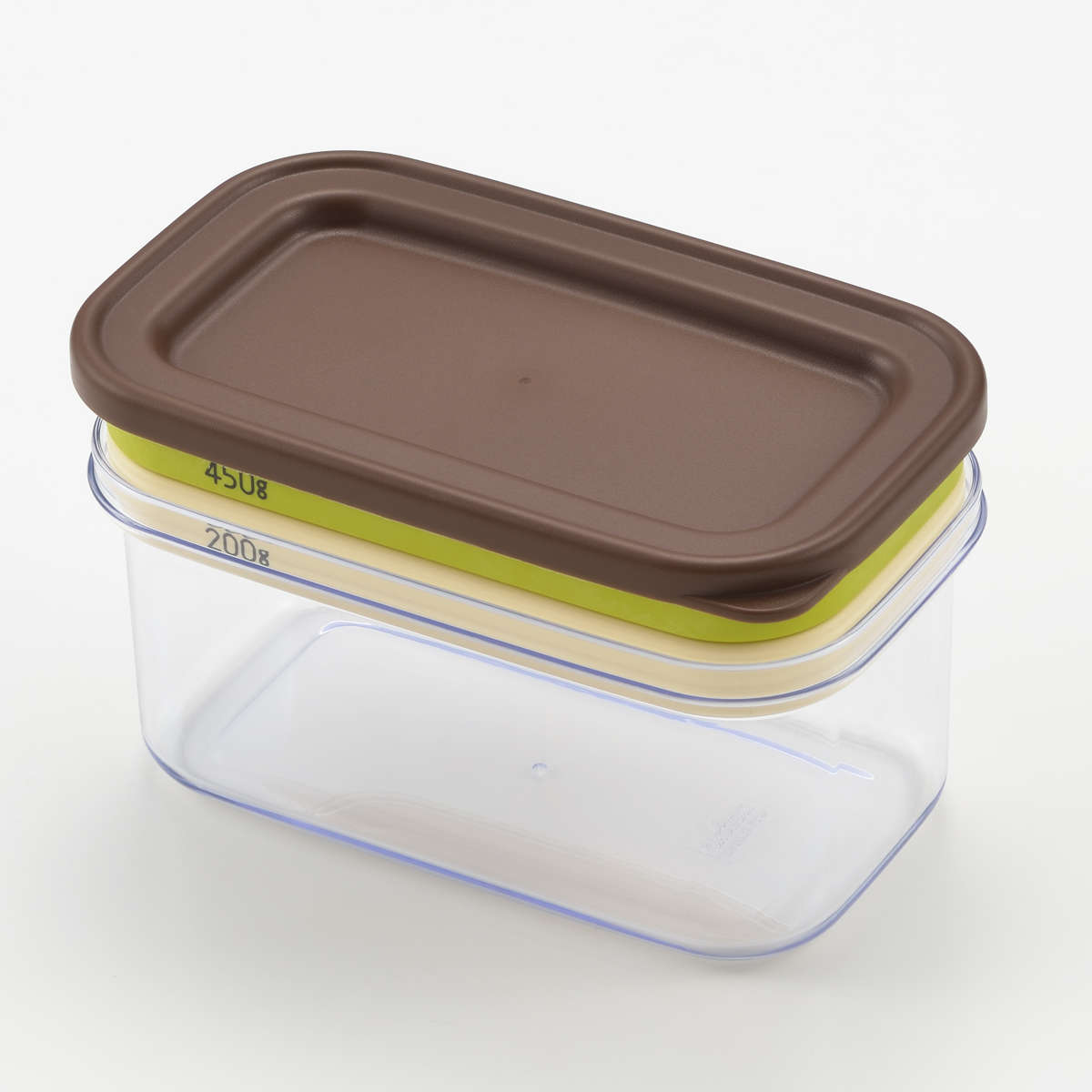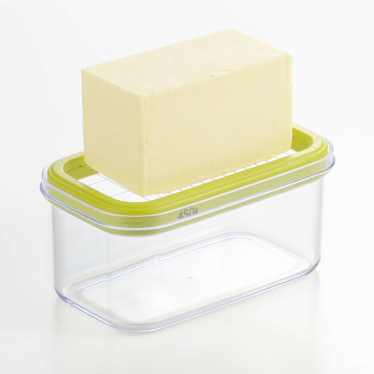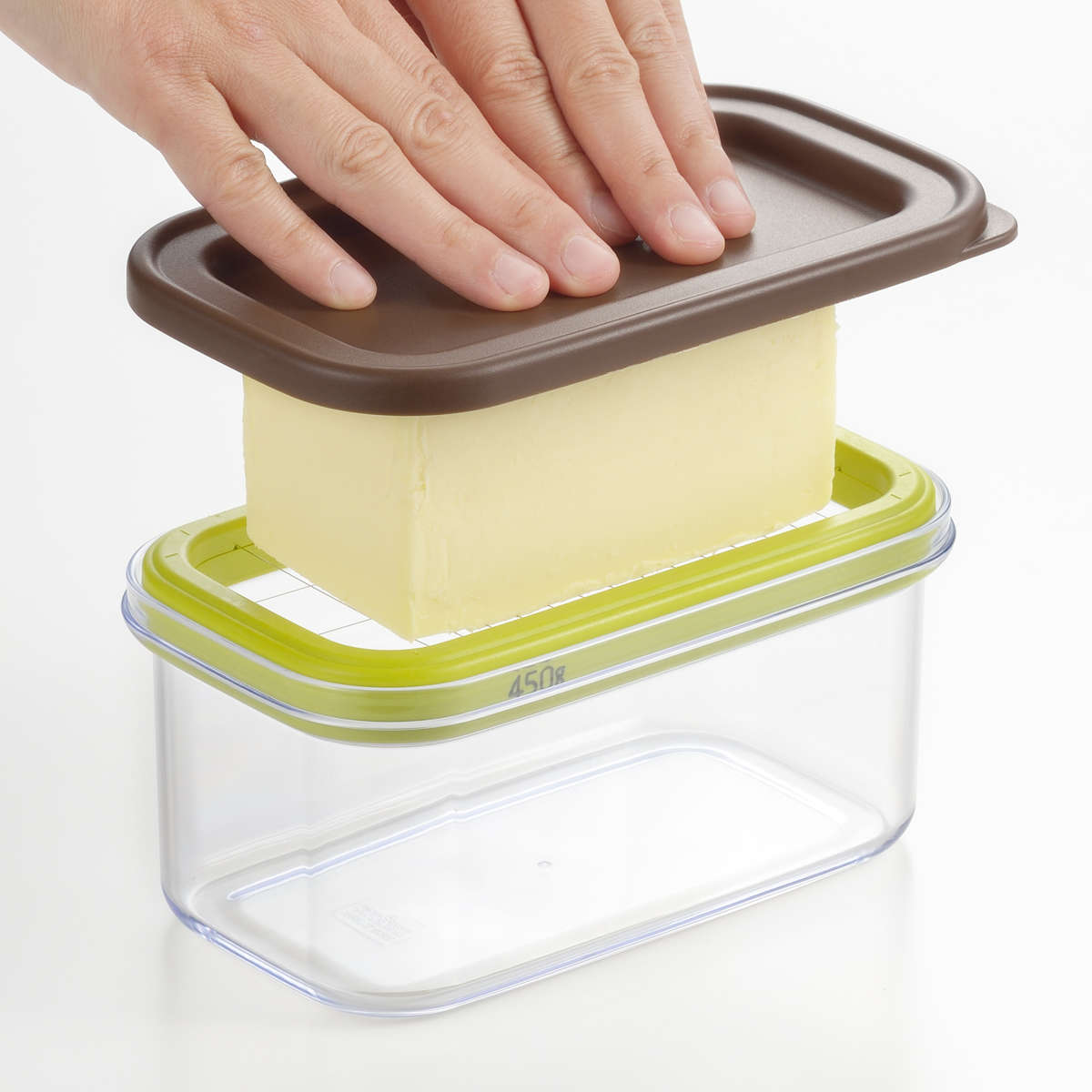 フタをすればそのまま保存容器として使えるため、切ったバターをそのまま冷蔵庫にしまえます。ピタッと閉まるシール蓋が乾燥や酸化を防ぎ、使いたいときにすぐ取り出せるのも魅力です。