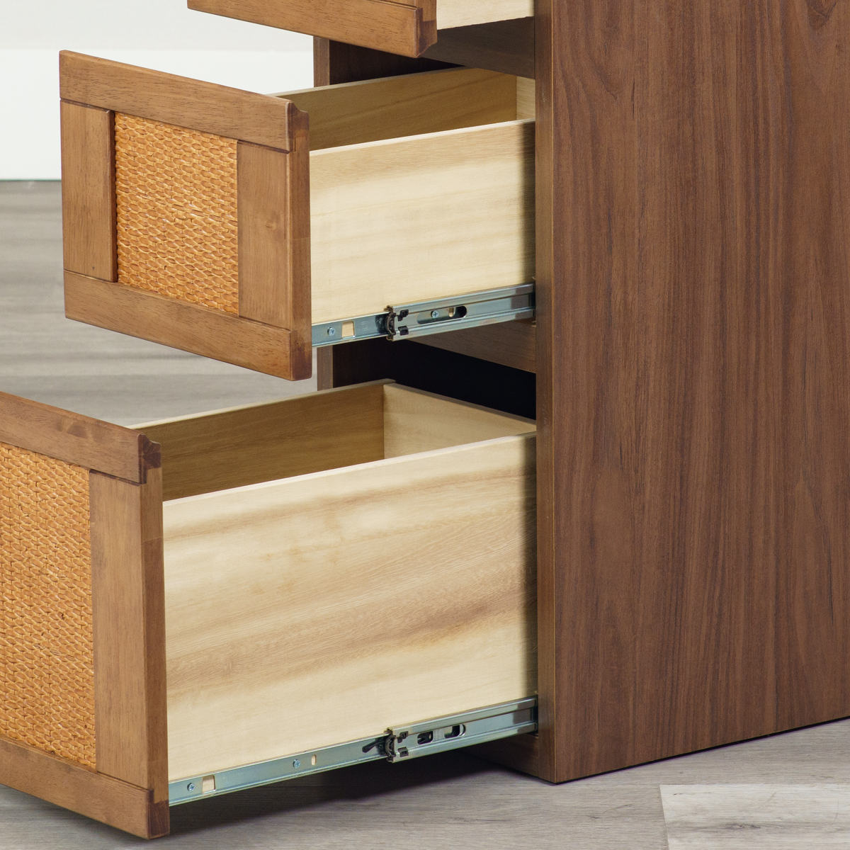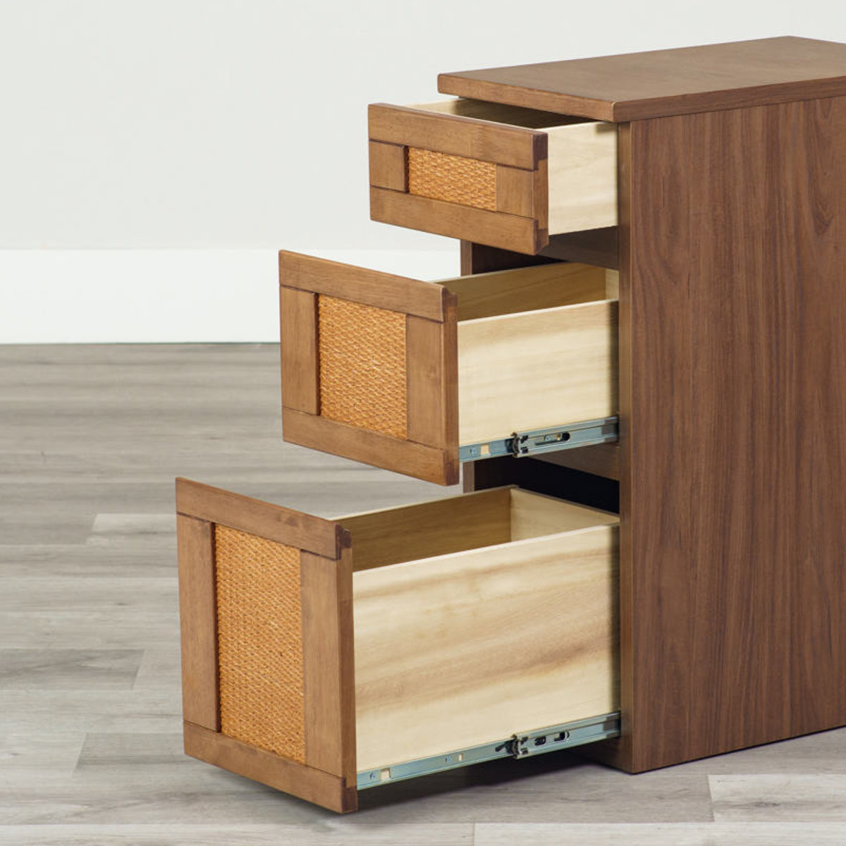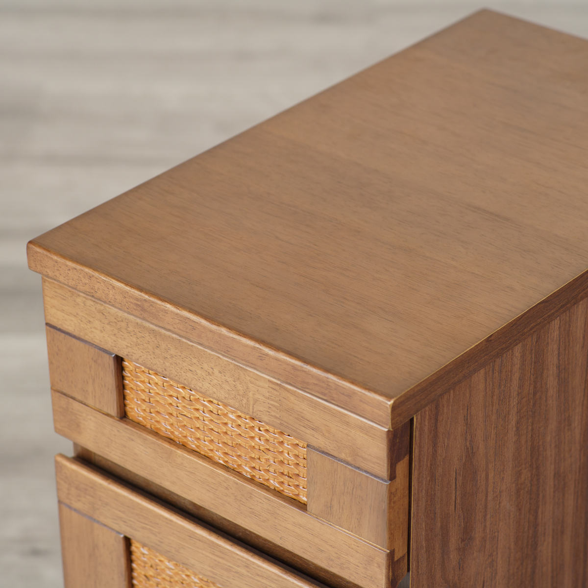 ラタンと天然木を組み合わせたナチュラルなサイドチェストです。お子様から大人まで永く使えるシンプルな佇まいで、デスク横やソファー横、寝室などさまざまな場所でお使いいただけます。