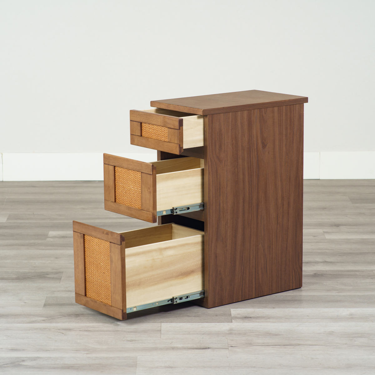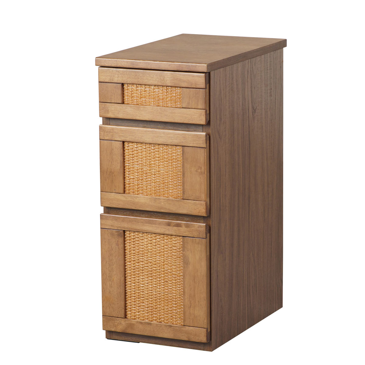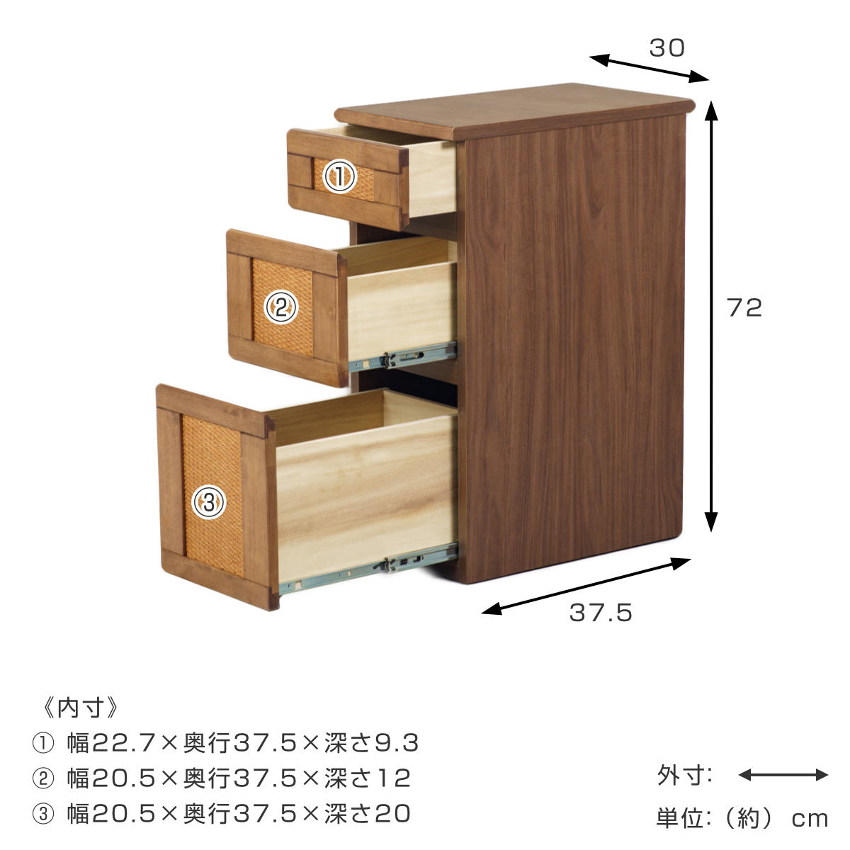 ラタン×天然木のサイドチェスト 幅30cm 3段