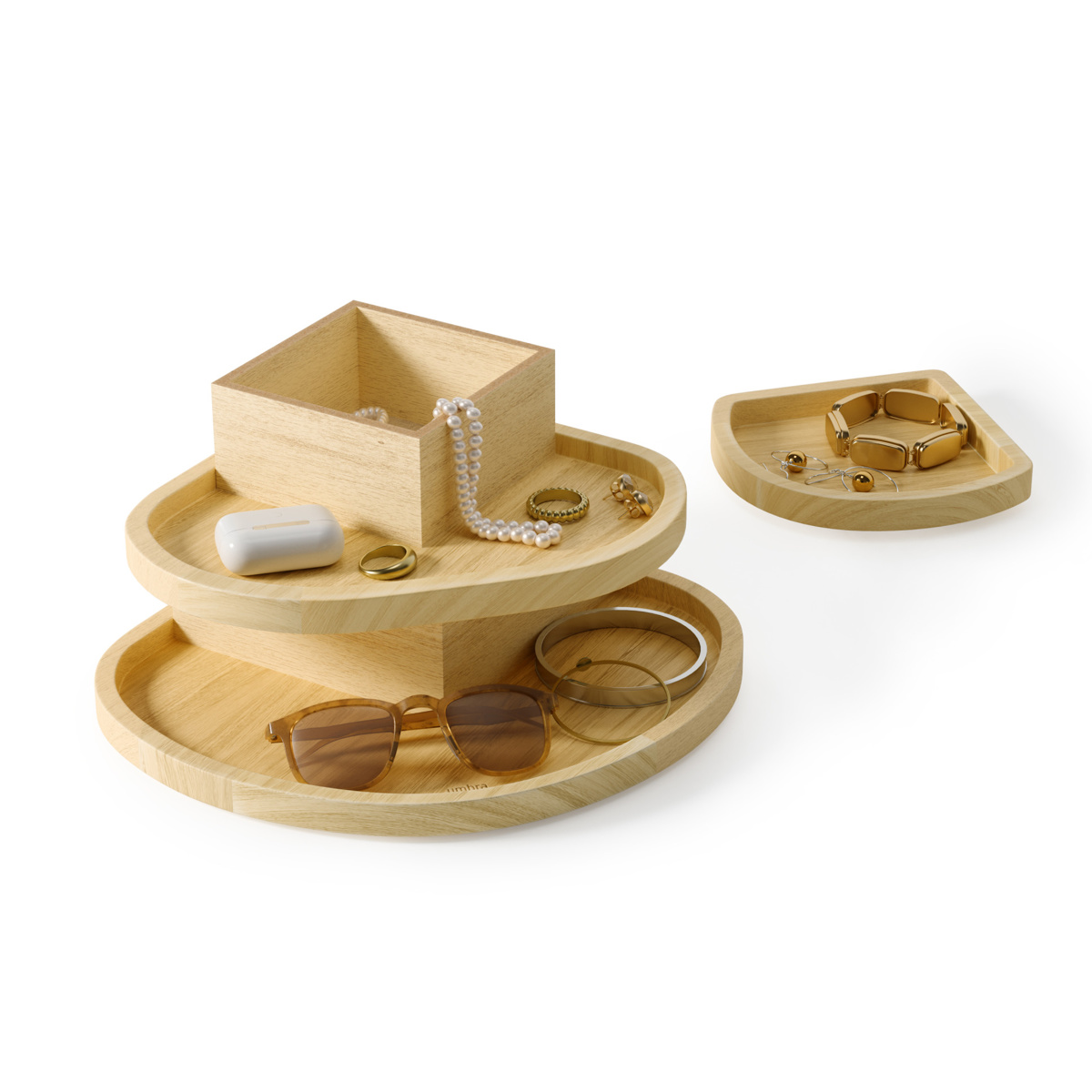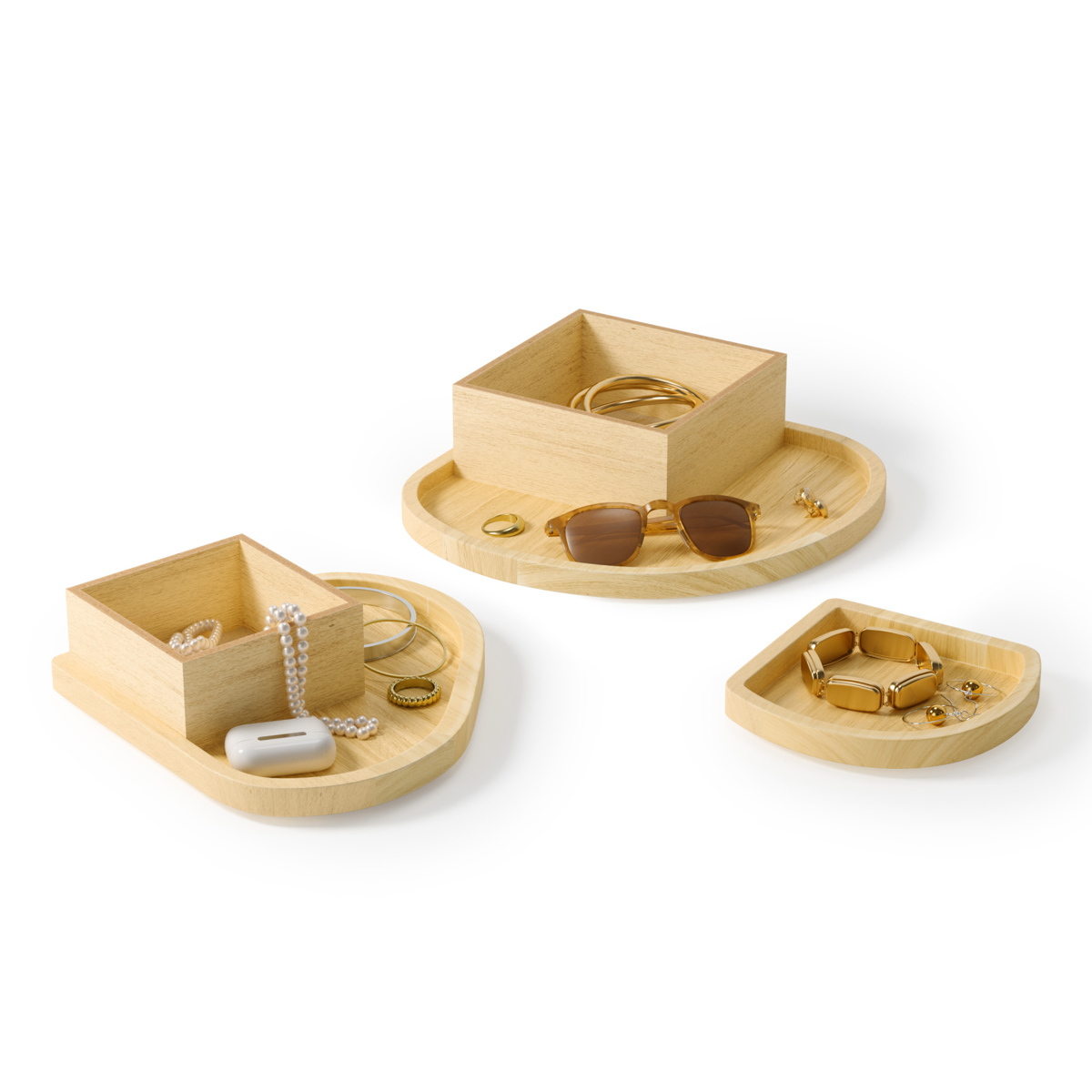 アクセサリーや小物をすっきりと収納できるアクセサリートレイです。ナチュラルな木目と柔らかなフォルムが空間に馴染み、置くだけで上質で落ち着いた雰囲気を演出します。