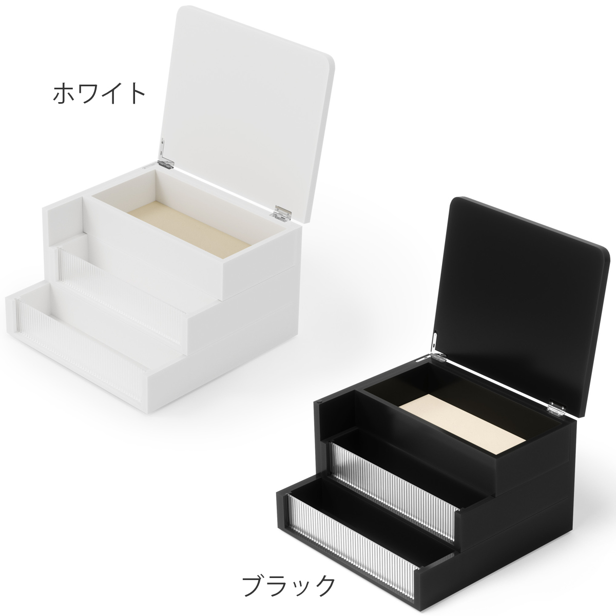 ●ボックスが3段重なる構造で、リング・ネックレス・腕時計などを分けて収納できます。