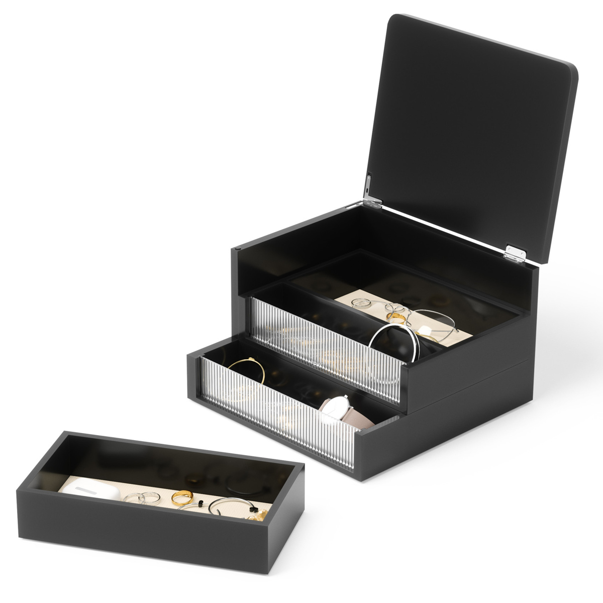 ●洗練されたデザインと機能性を兼ね備えた、モダンなジュエリーボックスです。