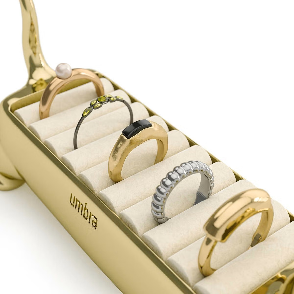 リングは最大9個まで収納可能です。サイズの異なるリングもまとめて整理できるので毎日のアクセサリー選びもスムーズに行えます。