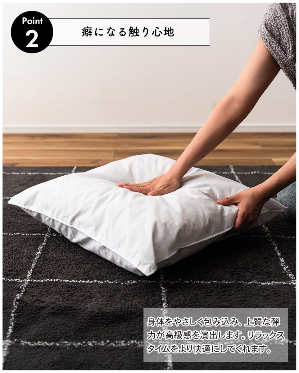 ●中材にはフェザーを使用し、ふんわりとした弾力のある心地よいクッション性を実現しています。