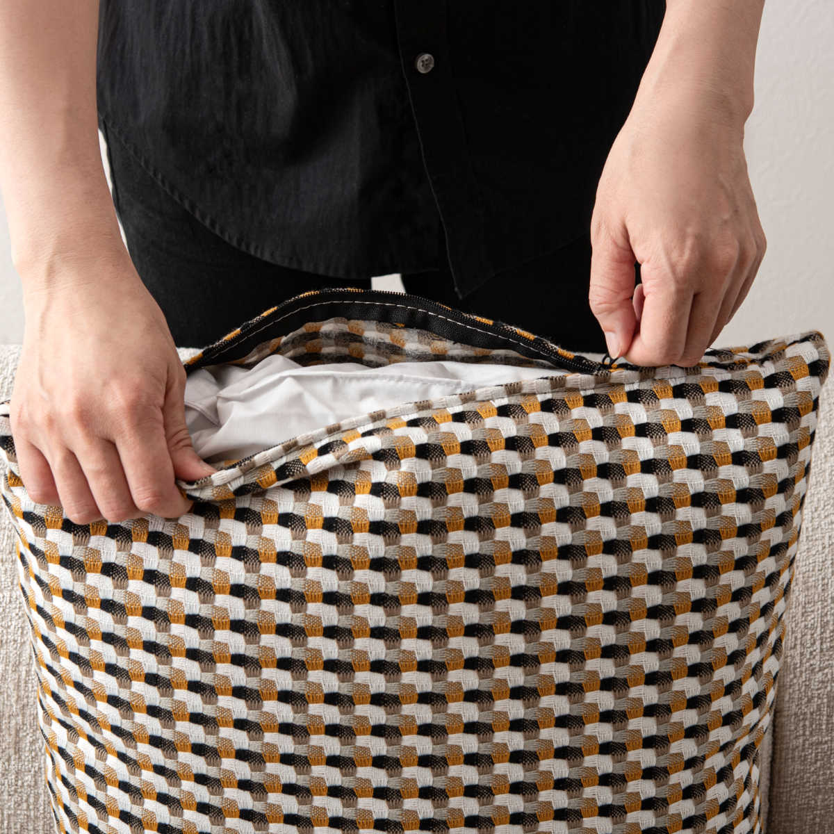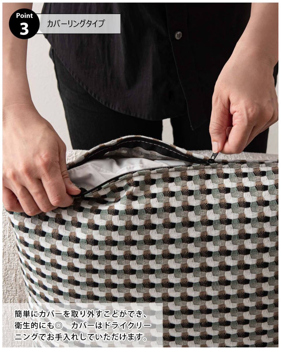カバーは取り外すことができ、ドライクリーニングでお手入れ可能。清潔な状態で長くお使いいただけます。