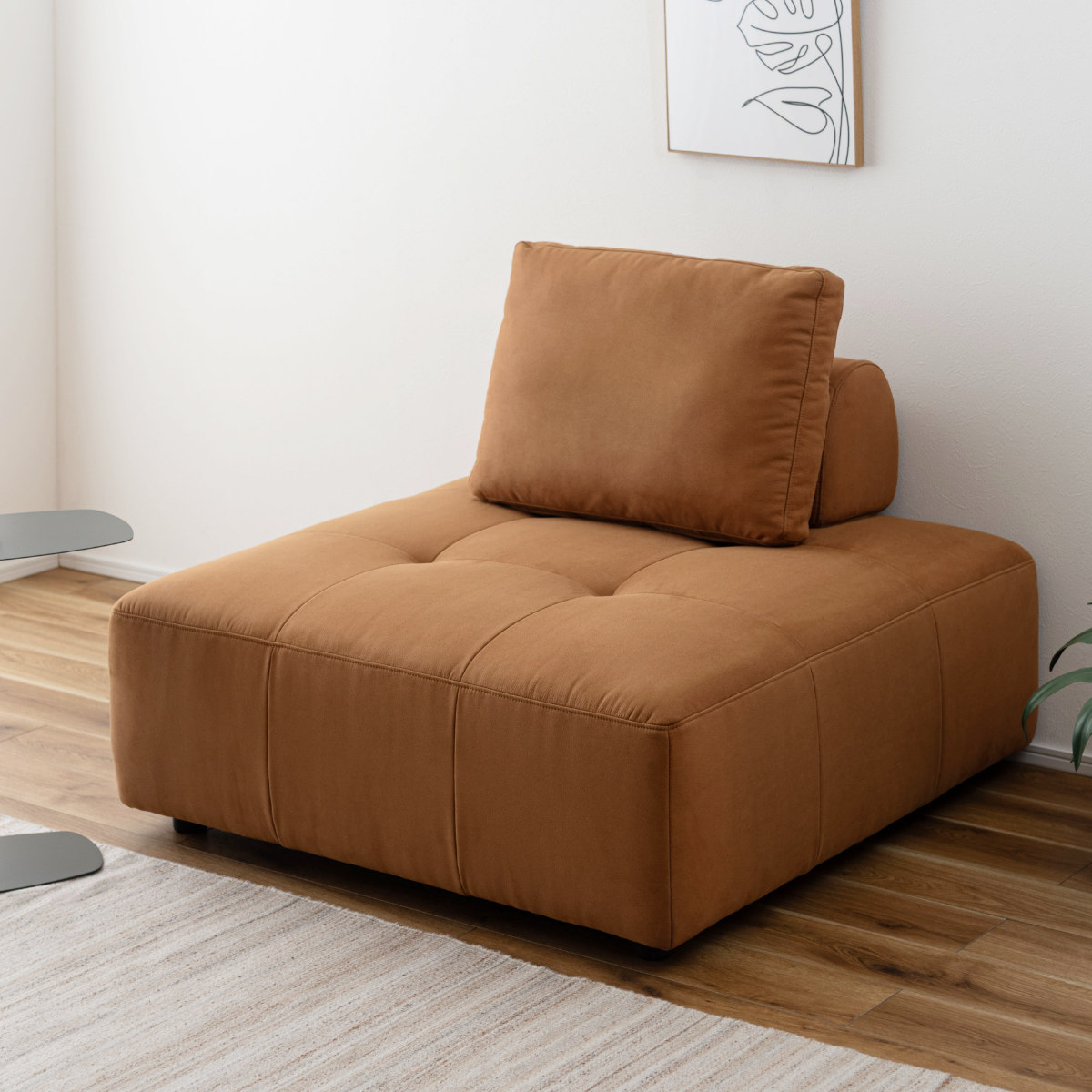 落ち着きのあるレザーのような風合いの生地を使用。シンプルながらも洗練された雰囲気で、お部屋のインテリアに自然となじみながら空間の印象を高めてくれます。