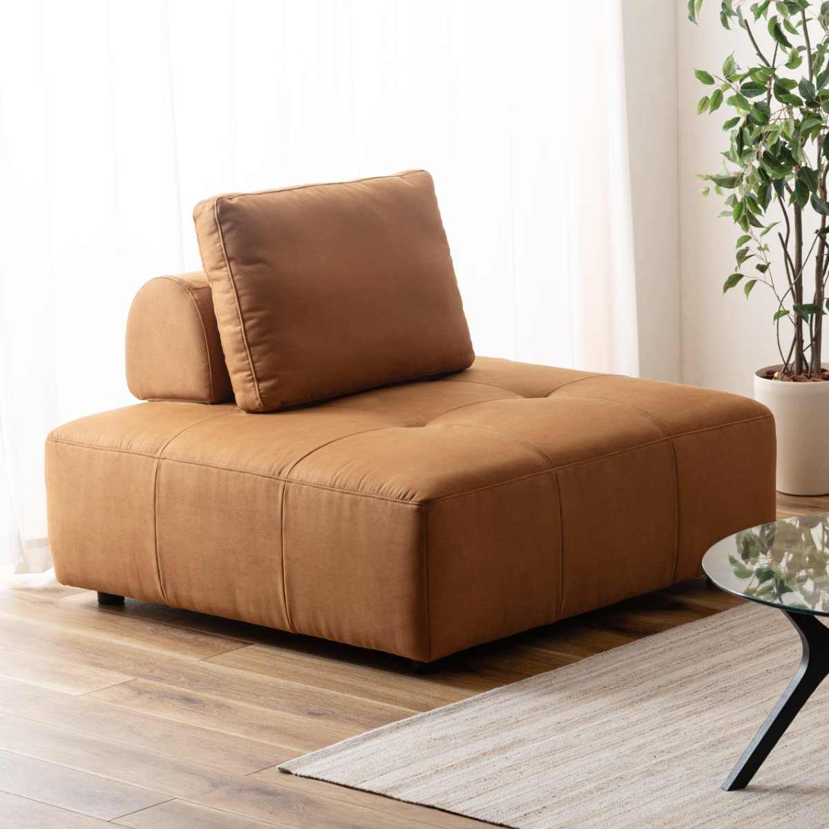 正面を気にせず、360度どこからでも座れる開放的なデザイン。リビングの中心に置いても使いやすく、家族や友人と自然に囲んで座ることができます。人数が増えた時でもゆったりとくつろげるのが魅力です。