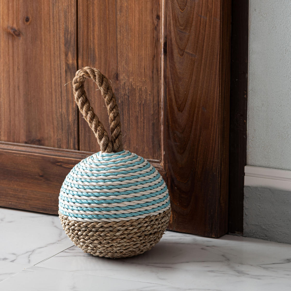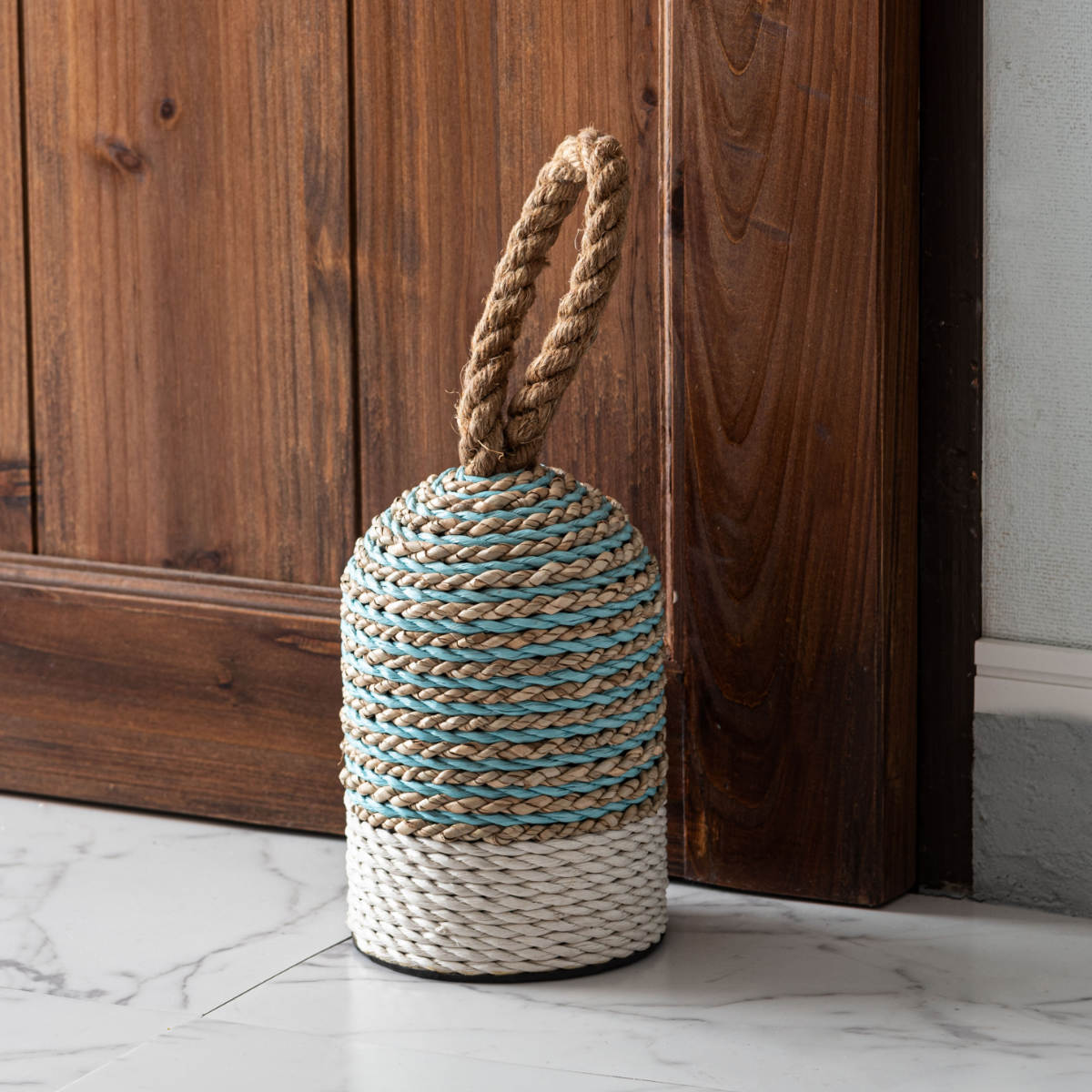 ロープを編み込んだ立体的なデザインは、ドアストッパーとしてだけでなく、空間のアクセントになるインテリア性も魅力。置いておくだけで、ナチュラルで温かみのある雰囲気を演出します。