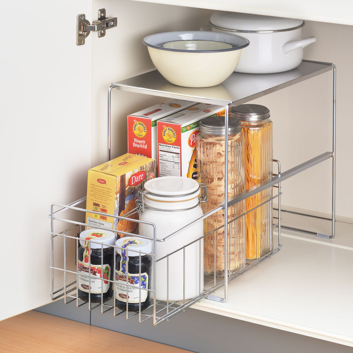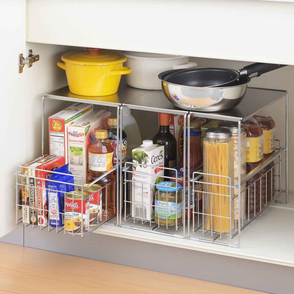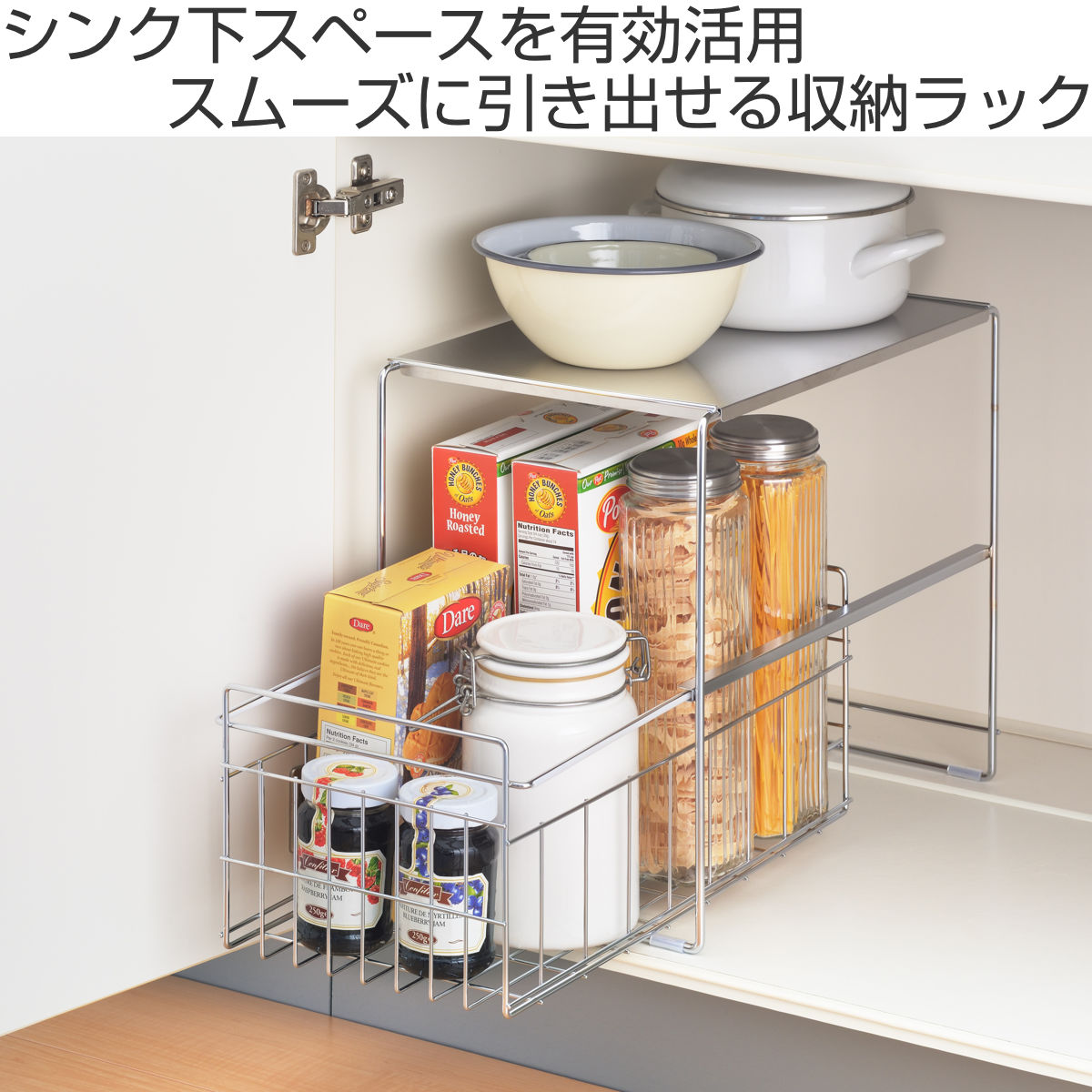 シンク下のスペースを有効活用できる収納ラックです。引き出しタイプなので奥の物も取り出しやすく、調理器具やストック品などをすっきり整理できます。