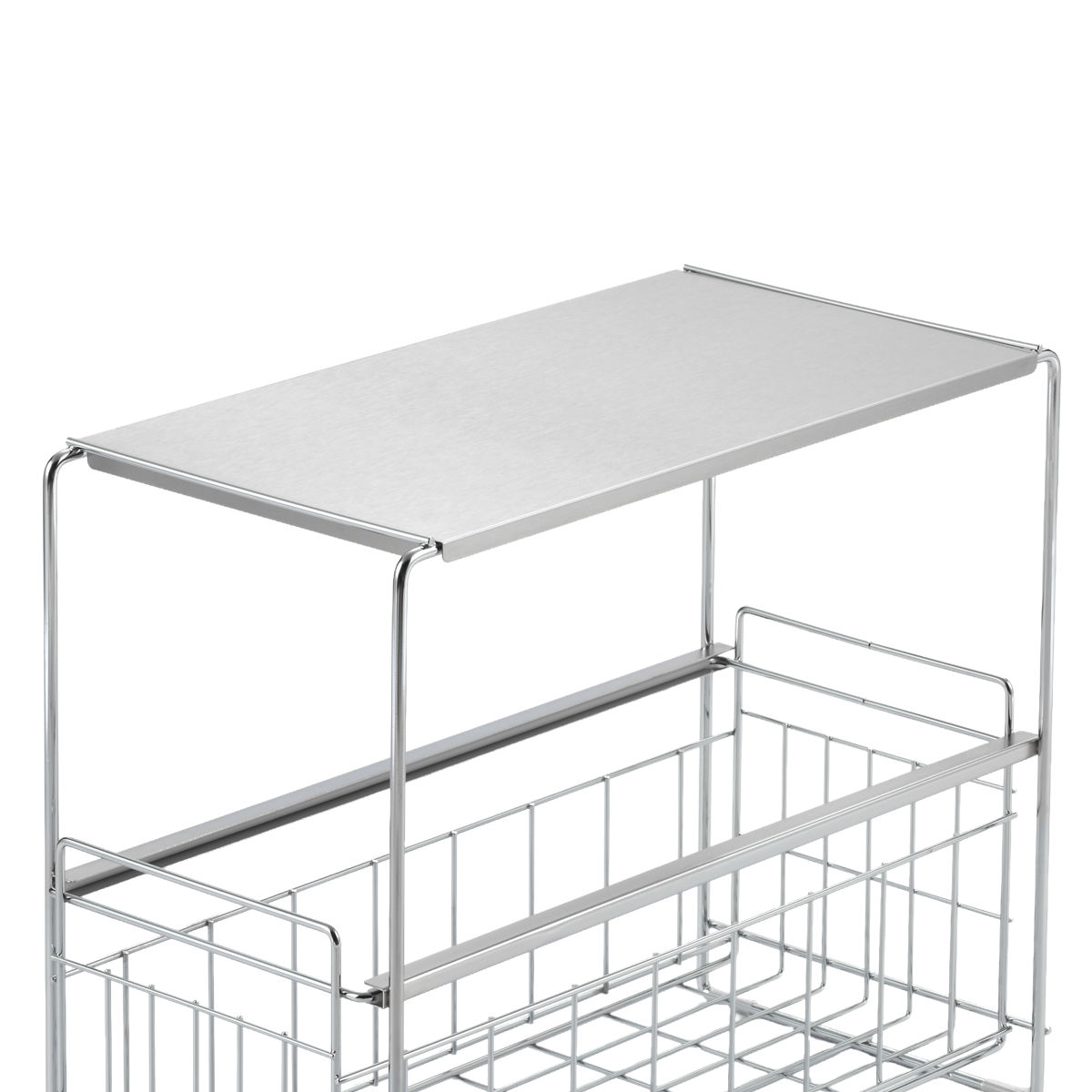 | 材質 | 本体:鉄(クロムメッキ) 天板:ステンレス スライド用チューブ:特殊ポリエチレン 脚ゴム:シリコーンゴム |