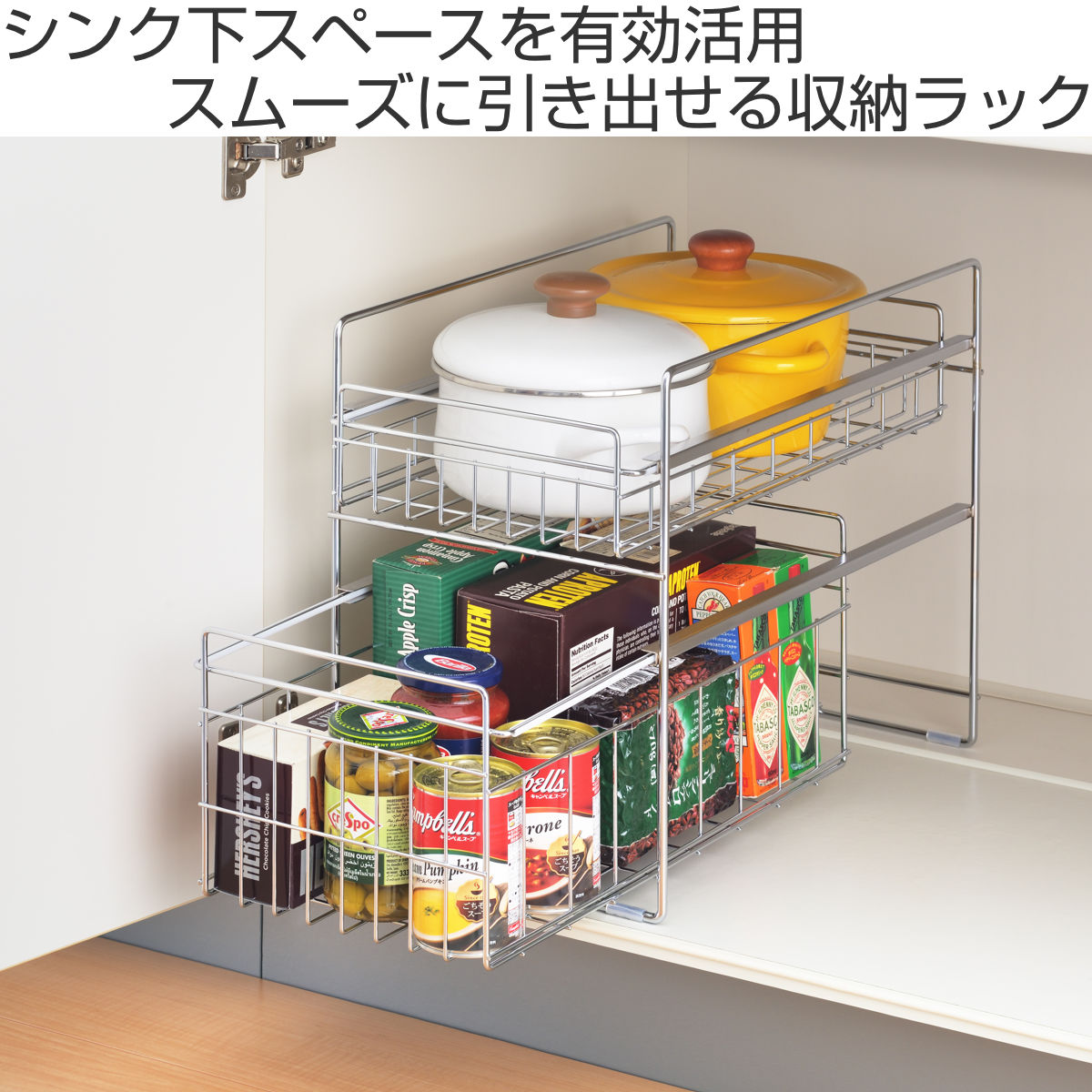 スムーズに引き出せるシンク下収納ラック 2段 幅25cm