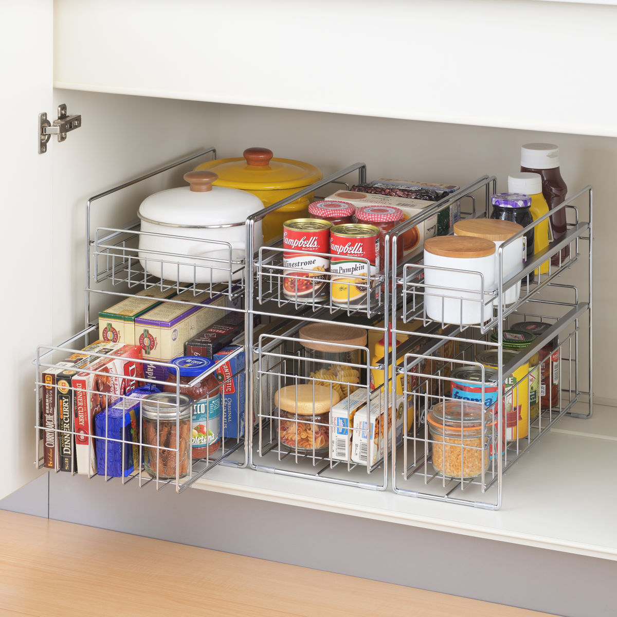 シンク下のスペースを有効活用できる収納ラックです。引き出しタイプなので奥の物も取り出しやすく、調理器具やストック品などをすっきり整理できます。