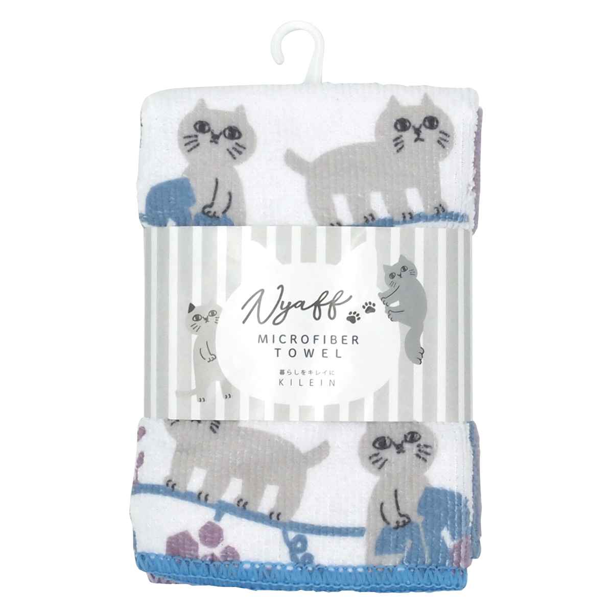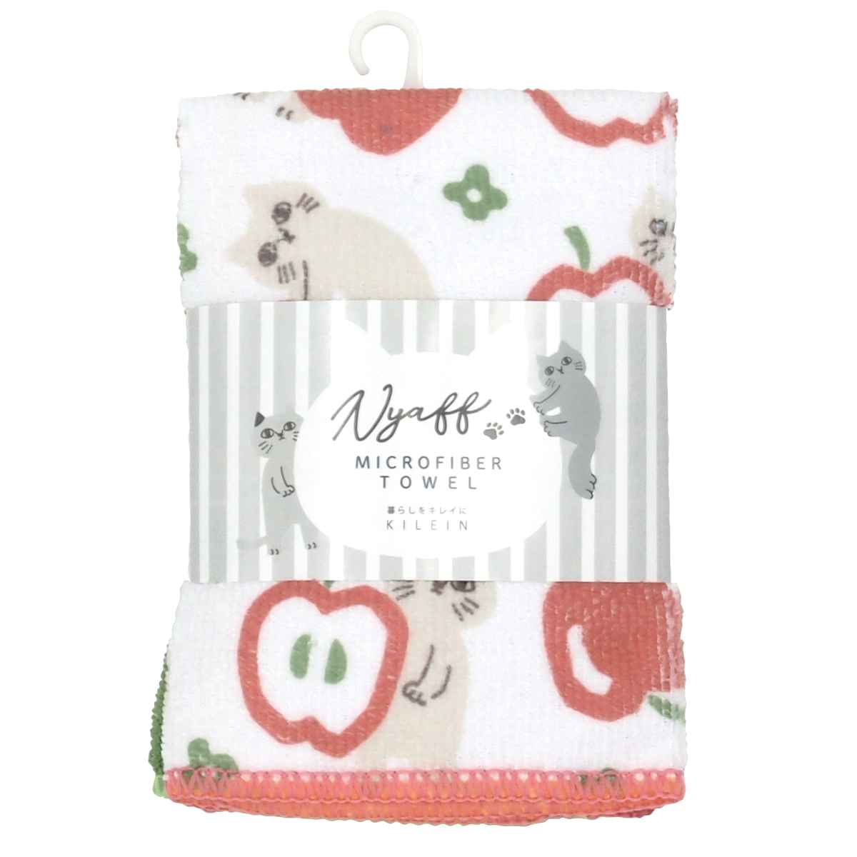 ●やわらかな表情のねことフルーツ柄がほっこり可愛いデザインのマイクロファイバータオルです。